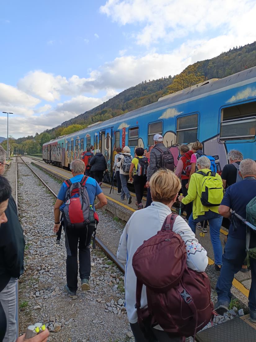 Obisk Zgornjega Posočja je bil v torek, dne 22. 10. 2024 za pohodnike DU Preddvor resnično prava "zelena" pravljica. Tokrat smo se na pot odpeljali z vlakom. Na vlak smo vstopili v Kranju, izstopili pa v kraju Most na Soči. Pogumno smo se odpravili na hrib Senica (658 m). ki se dviga nad smaragdno reko Soča. Dobro uhojena steza se je strmo vzpenjala vse do vrha - do razgledne točke. Z razgledne točke je bil najlepši pogled na reko Sočo, na lesketajoče se akumulacijsko jezero, na kraj Most na Soči in Tolmin ter na okoliško gorovje. Ob Franckini recitaciji pesmi Soči, ki jo je napisal Simon Gregorčič, smo še lepše doživeli pogled na to reko. Toplo sončno jesensko vreme, čudoviti panoramski razgledi, prijetna družba in odlična pogostitev s strani današnje slavljenke Dragice, ki je pred kratkim praznovala rojstni dan, so nam naredili čudovit dan. Domov smo se vrnili pozno popoldne.