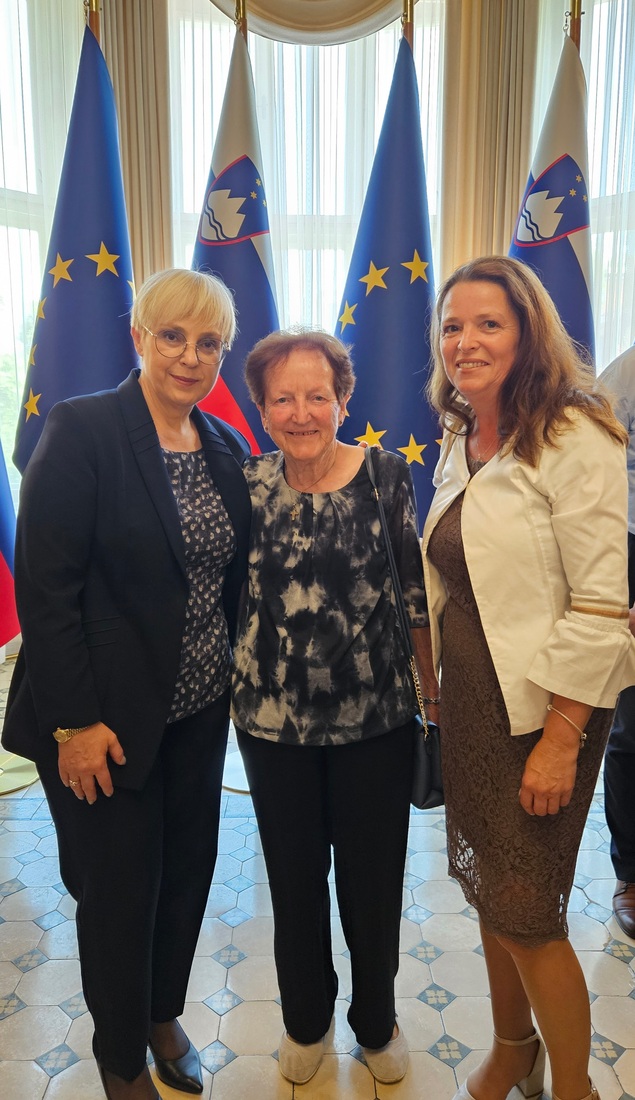 Sprejema sta se udeležili tudi naši krajanki Francka Brešar kot nominiranka priznanja za 20 let vodenja molitvene skupine in prostovoljnega dela stanovalcem v DSO Preddvor in direktorica Lidija Kos.