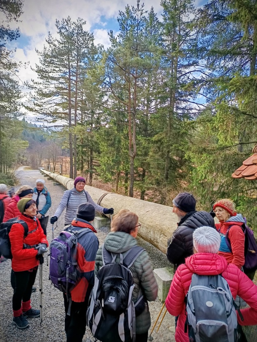 Projekt današnjega dne je bil, da se odpravimo po spominski poti "najdaljšega jambora'. Ustavili smo se ob umetnem jezeru v mali vasici Rakitna, sredi Notranjske (občina Brezovica), kjer je bilo izhodišče naše poti. Ob prihodu nas je pozdravil sonček, prijetno pa nas je pogostila tudi naša simpatična slavljenka Danica, z domačimi dobrotami, tako, da je bilo vzdušje res popolno.