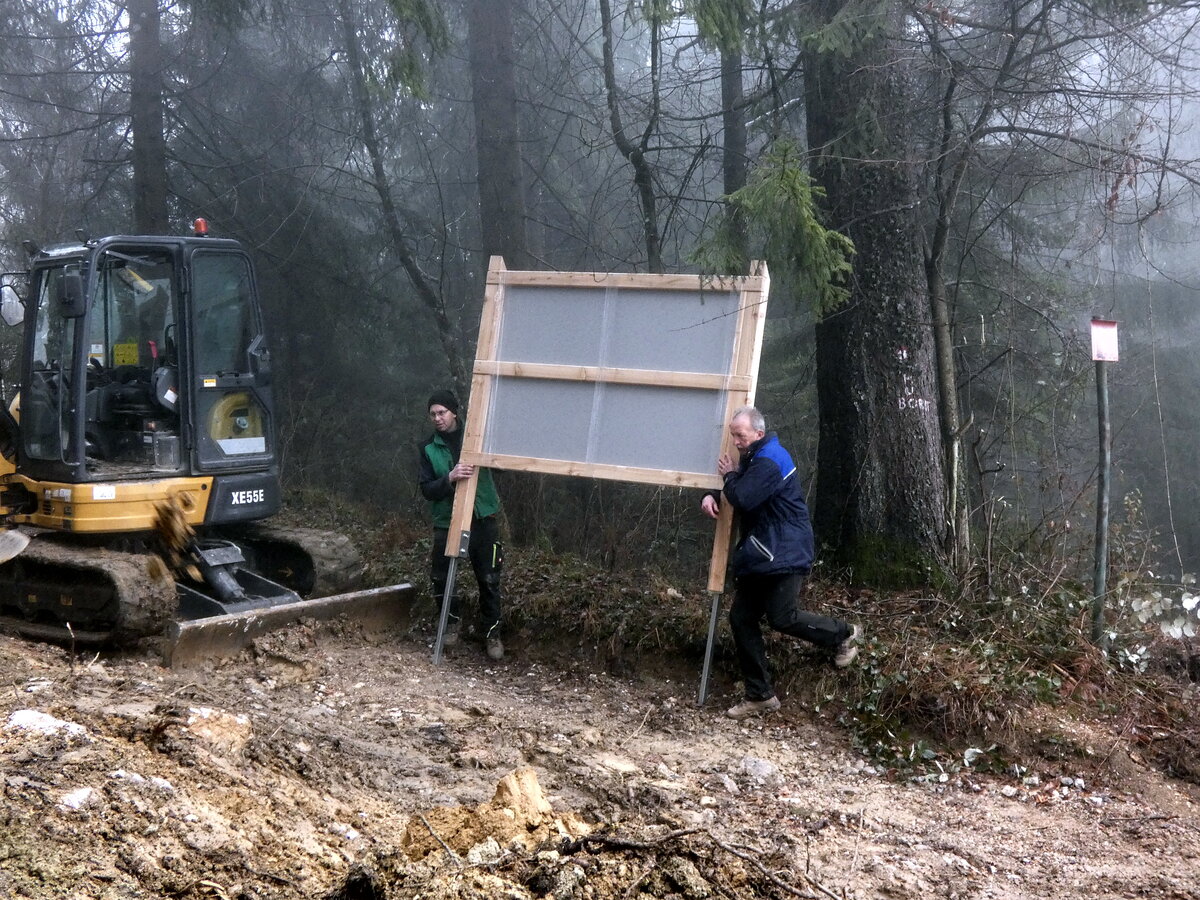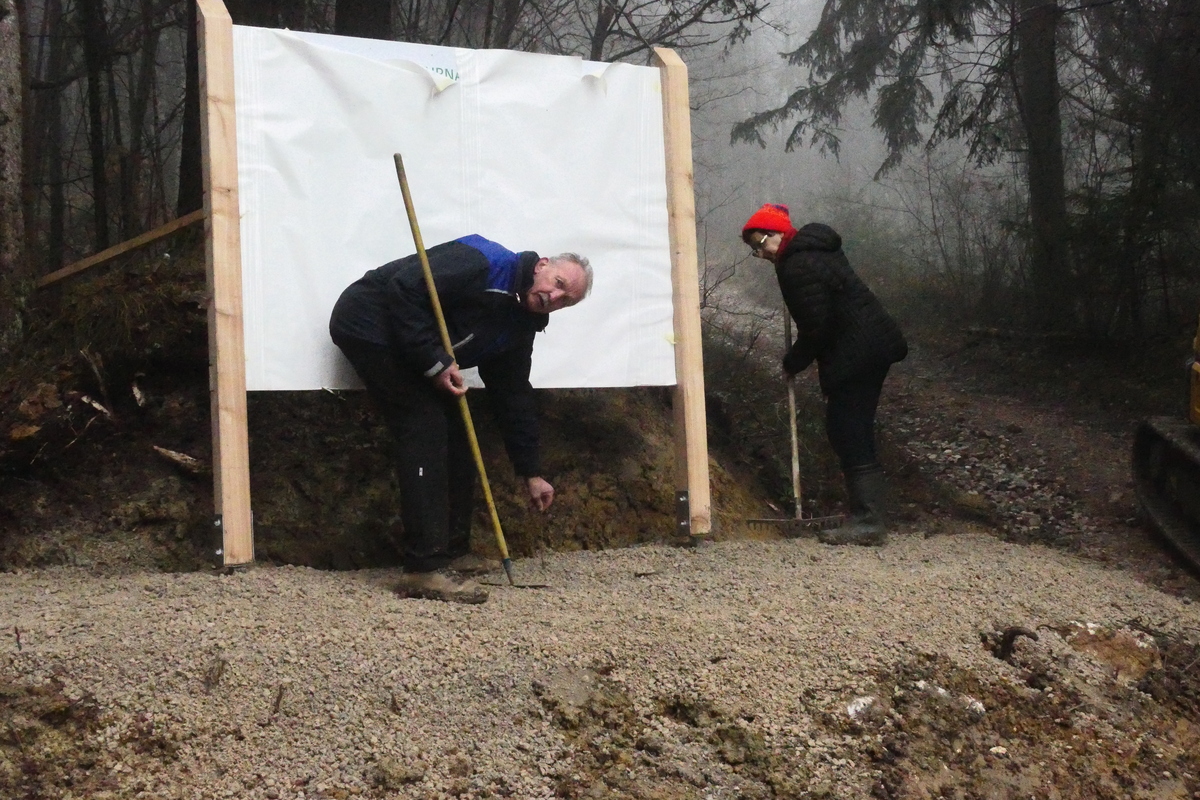 Hvala Janezu Alešu ml., po domače Remčevemu iz Mač, ki je na sestanku Krajevnega odbora Potoče idejo sprejel z odprtimi rokami in zanjo ponudil prostor na zasebnem zemljišču. Pa ne le to, teren je tudi pripravil in skupaj z očetom, Janezom Alešem st., sodeloval pri transportu in postavitvi ter za povrhu prispeval še gradbeni material. Boglonaj vama, s stroji in takšno dobro volje gre vse veliko lažje!