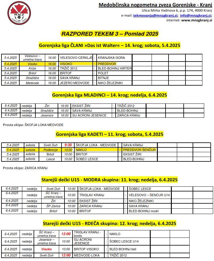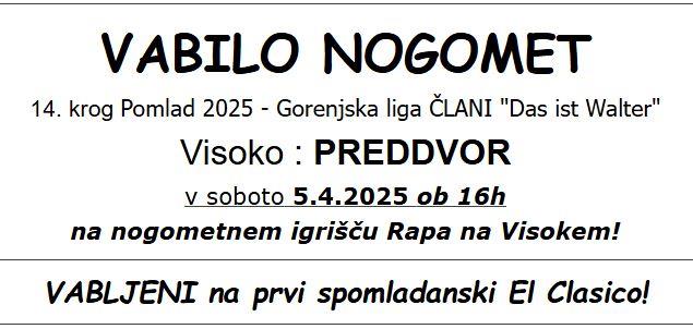 14. krog Pomlad 2025 - Gorenjska liga ČLANI "Das ist Walter" Visoko : PREDDVOR