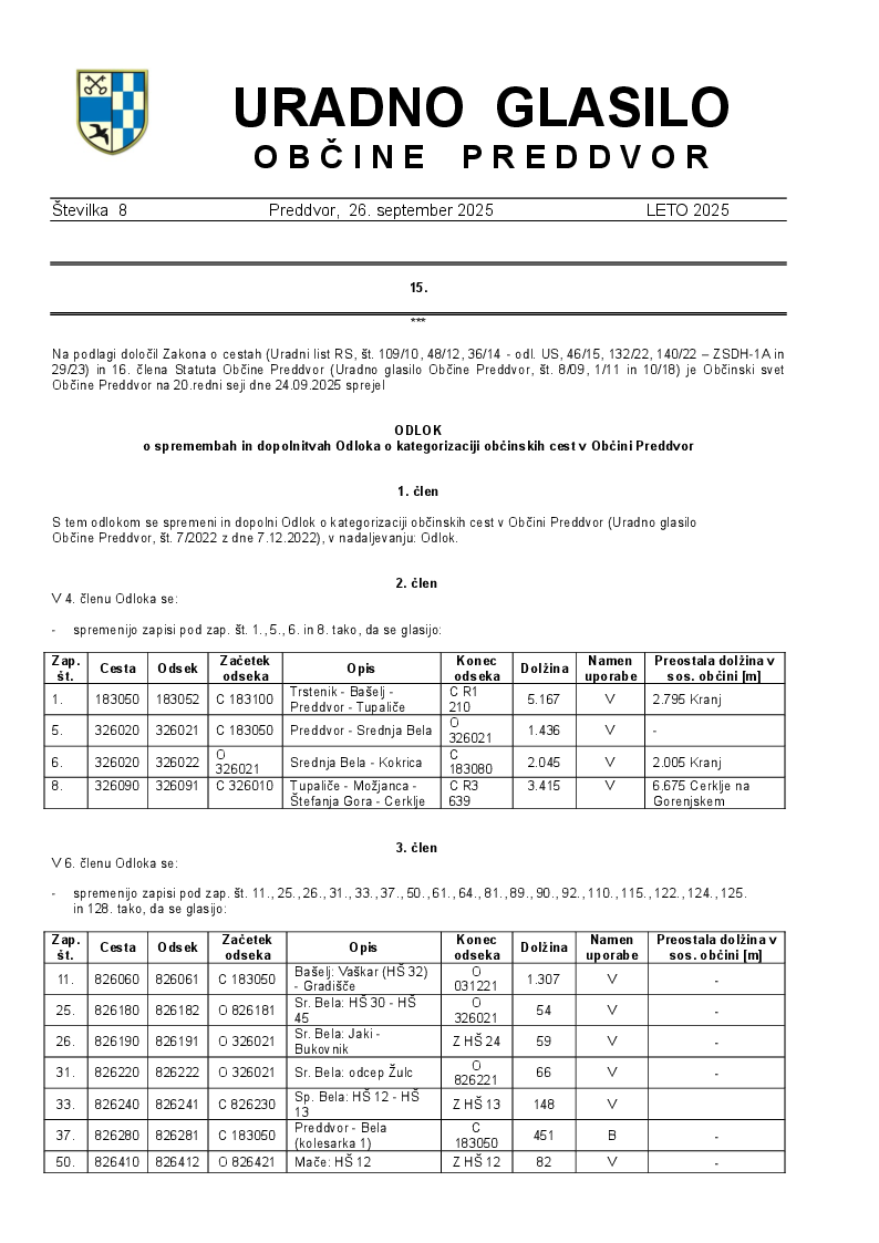 Uradno glasilo Občine Preddvor - številka 08/2025