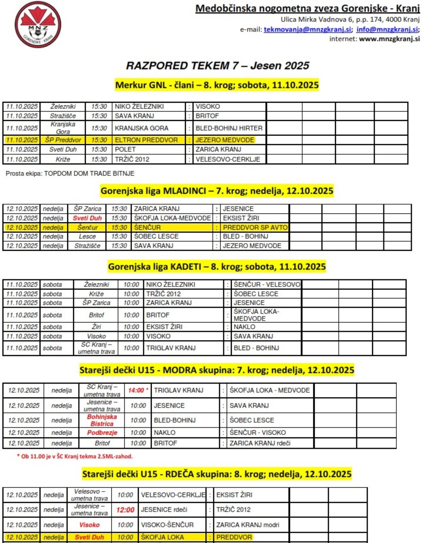 8. krog Jesen 2025 - Gorenjska liga ČLANI Eltron PREDDVOR : Jezero Medvode