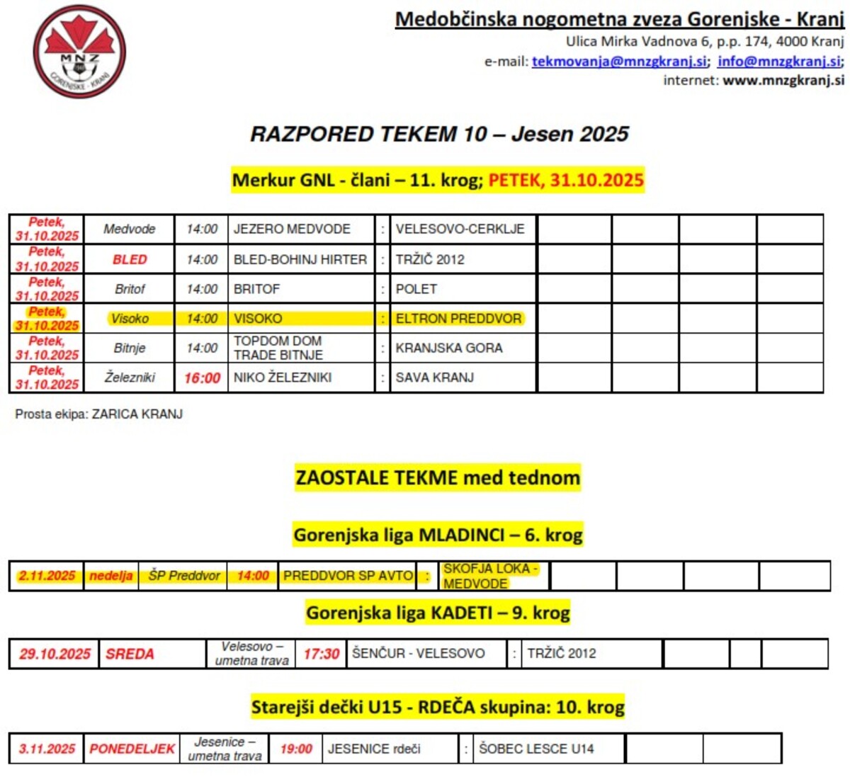 31.10.2025 (petek) ob 14:00