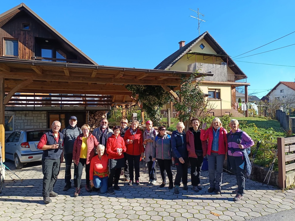 Prvi pohod DU Preddvor v novembru 2025 je bil namenjen naši slavljenki, 80-letni Martinki Vavpot. Po uvodnem sprehodu ob Savi od Čirč do Hrastja in nazaj smo se zapeljali k Martinki domov v Britof, kjer nas je pričakala praznično oblečena v narodni noši. Po voščilih in odlični malici je bil čas za kratek sprehod skozi njenih 80 let.