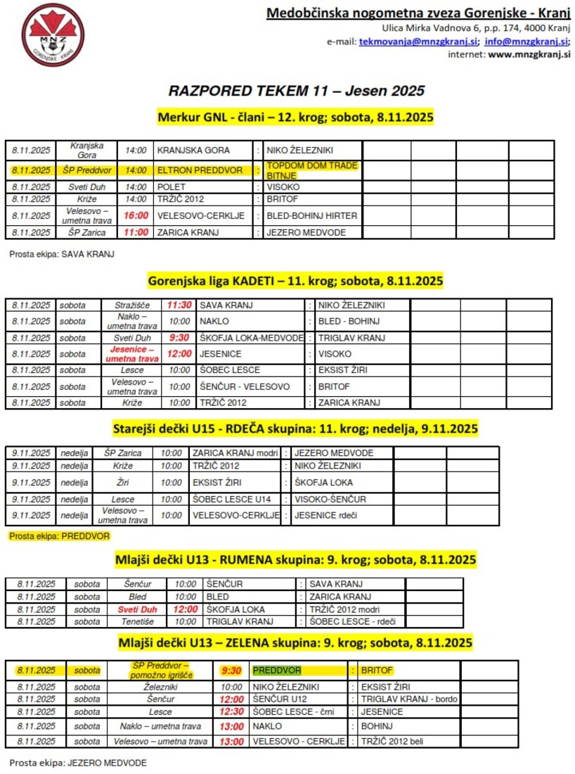 12. krog Jesen 2025 - Gorenjska liga ČLANI Eltron PREDDVOR : Topdom Dom trade Bitnje