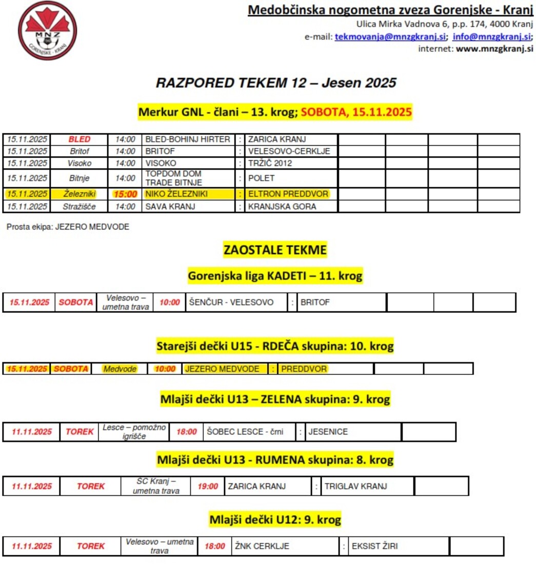 13. krog Jesen 2025 - Gorenjska liga ČLANI Niko Železniki : Eltron PREDDVOR
