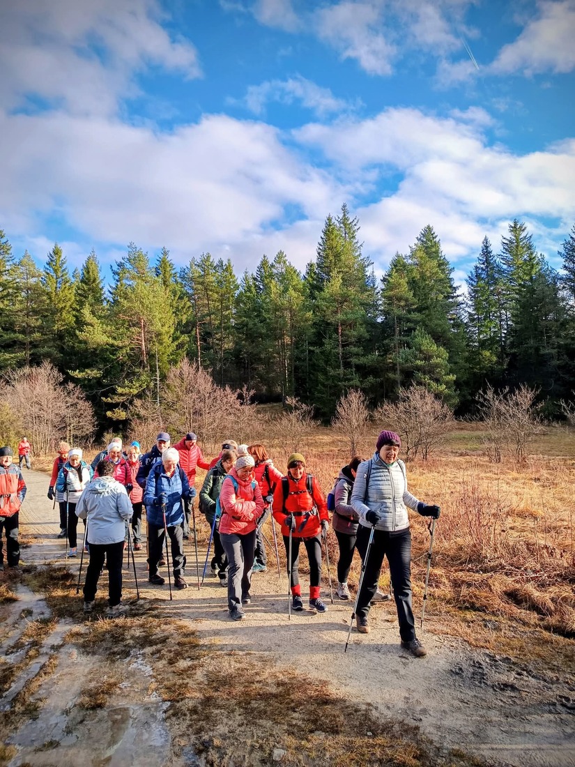 Projekt današnjega dne je bil, da se odpravimo po spominski poti "najdaljšega jambora'. Ustavili smo se ob umetnem jezeru v mali vasici Rakitna, sredi Notranjske (občina Brezovica), kjer je bilo izhodišče naše poti. Ob prihodu nas je pozdravil sonček, prijetno pa nas je pogostila tudi naša simpatična slavljenka Danica, z domačimi dobrotami, tako, da je bilo vzdušje res popolno.