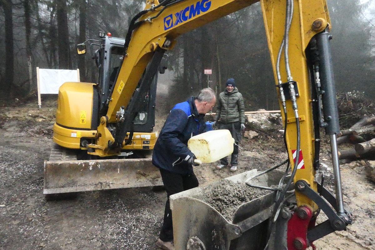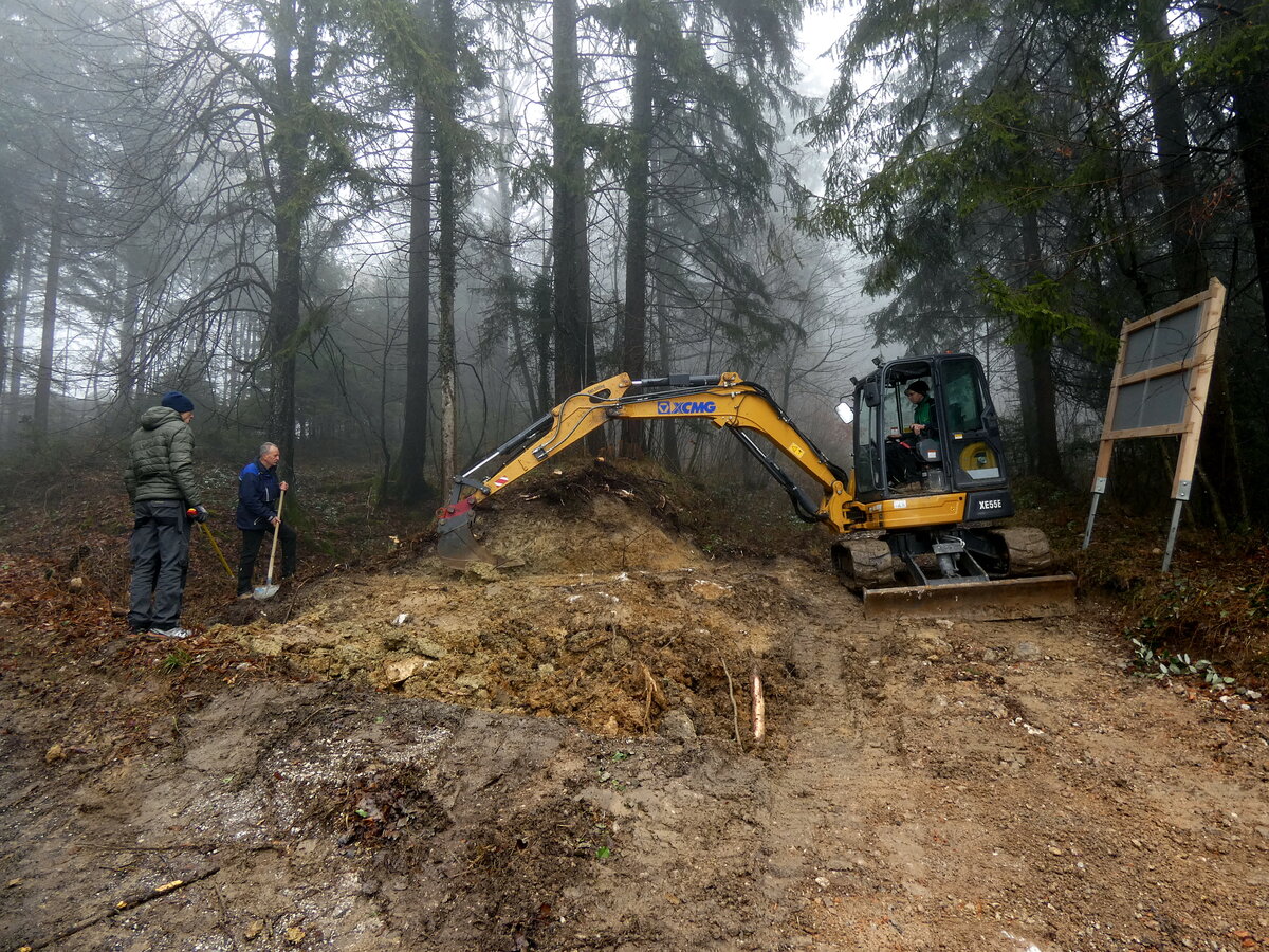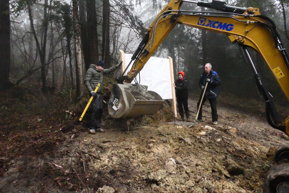 Hvala Janezu Alešu ml., po domače Remčevemu iz Mač, ki je na sestanku Krajevnega odbora Potoče idejo sprejel z odprtimi rokami in zanjo ponudil prostor na zasebnem zemljišču. Pa ne le to, teren je tudi pripravil in skupaj z očetom, Janezom Alešem st., sodeloval pri transportu in postavitvi ter za povrhu prispeval še gradbeni material. Boglonaj vama, s stroji in takšno dobro volje gre vse veliko lažje!