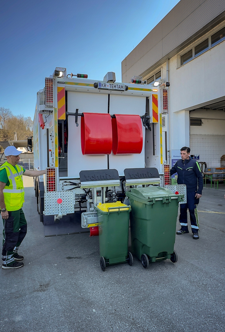 Novo vozilo Mercedes-Benz z nadgradnjo hrvaškega proizvajalca Tehnix (EKOMUNAL 18) omogoča tehtanje posameznega zabojnika neposredno na stresalniku ob praznjenju. Tehtnici, vgrajeni na dvojnem stresalnem mehanizmu, zagotavljata natančne podatke o količini odpadkov v posameznem zabojniku.