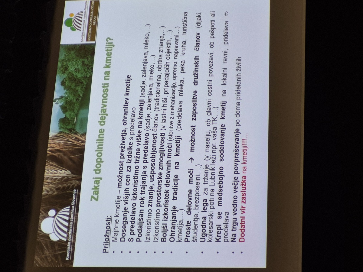 V prvem delu je Ana Beden predstavila dopolnilne dejavnosti na kmetiji ter izpostavila priložnosti za povečanje dodane vrednosti in razvoj kmetij.