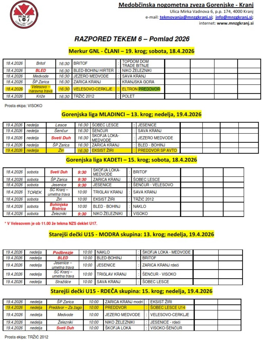 19. krog Pomlad 2025 - Gorenjska liga ČLANI Velesovo-Cerklje : Eltron PREDDVOR