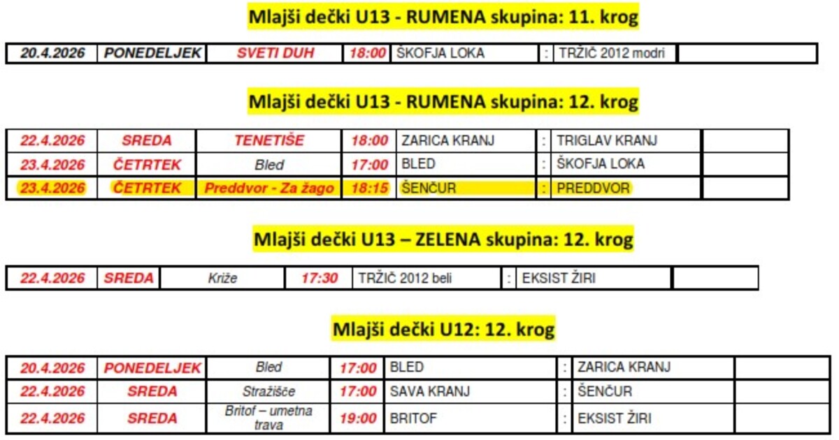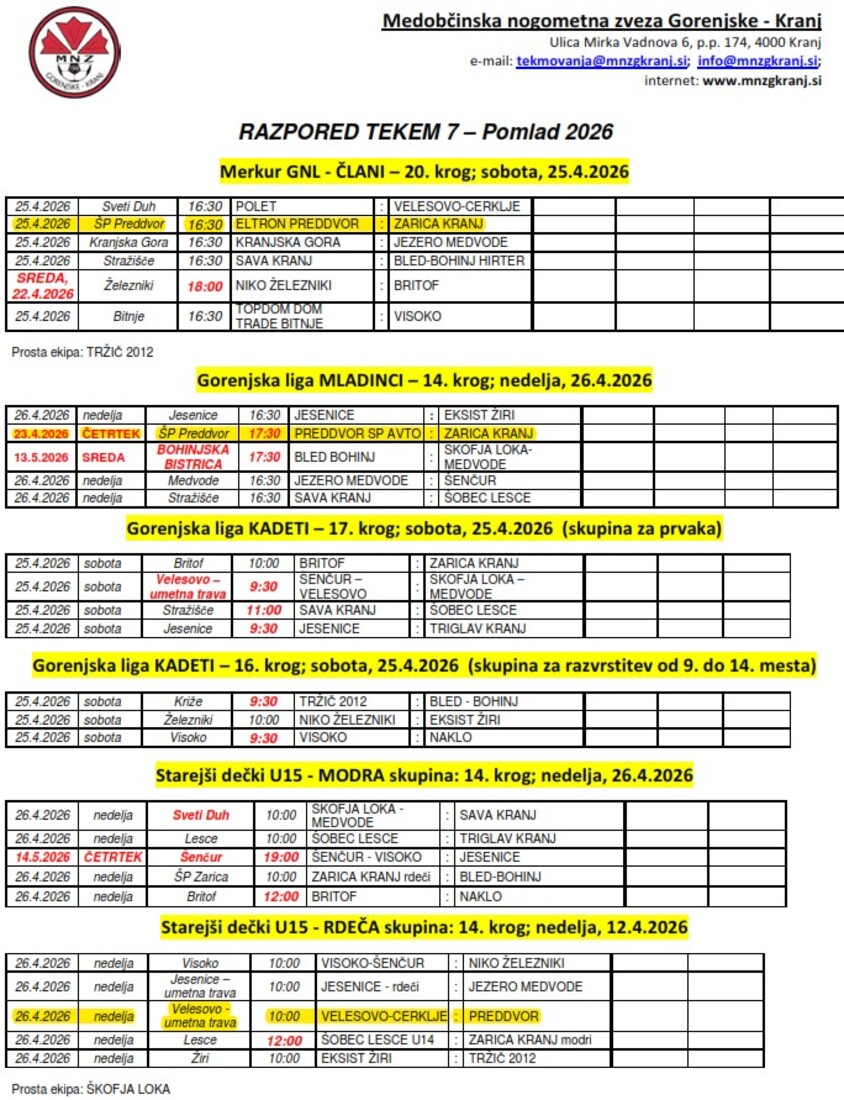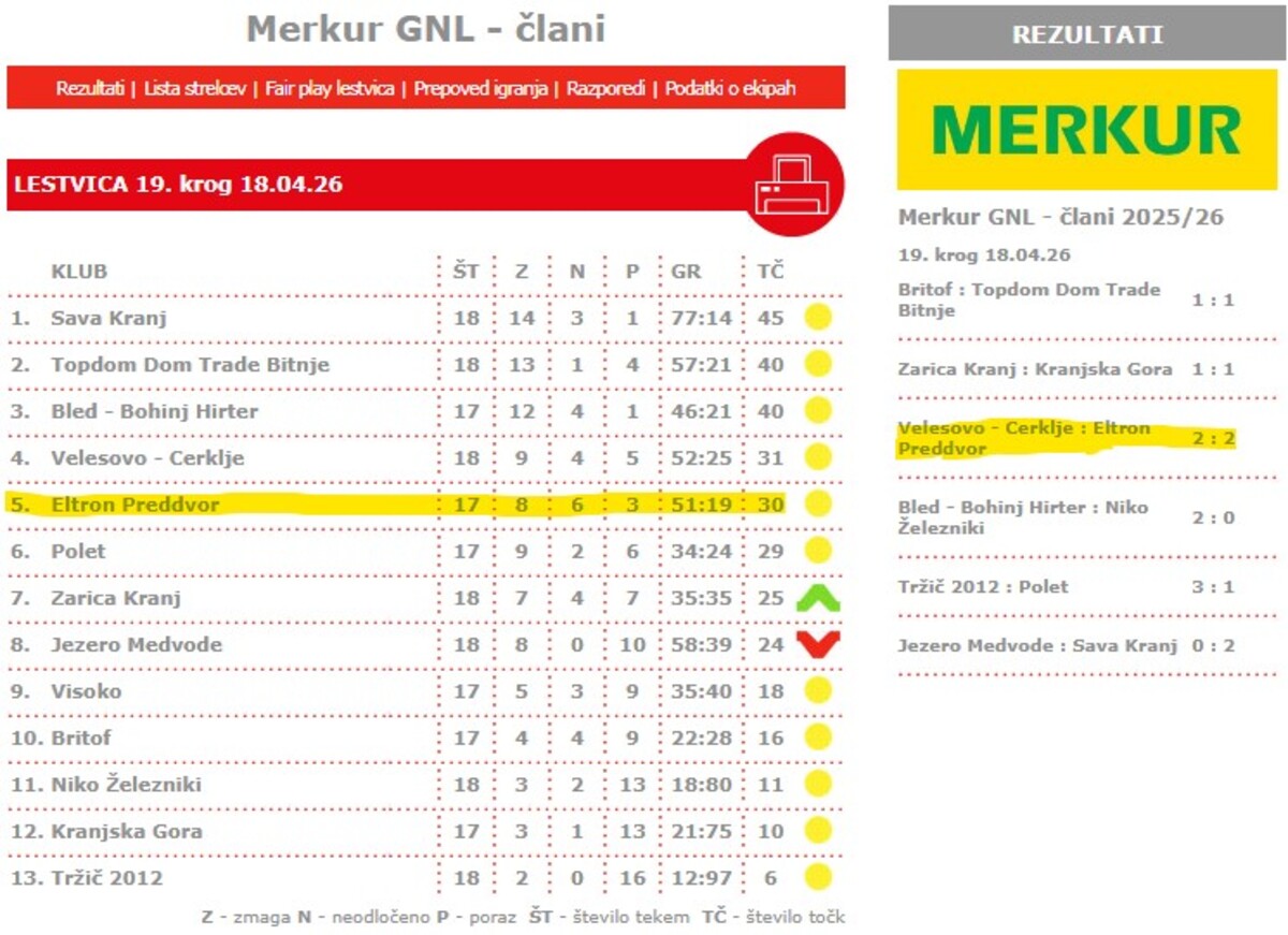 20. krog Pomlad 2026 - Gorenjska liga ČLANI Eltron PREDDVOR : Zarica Kranj