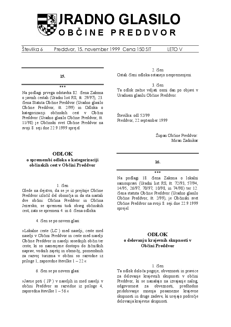 Uradno glasilo Občine Preddvor – Številka 6/1999