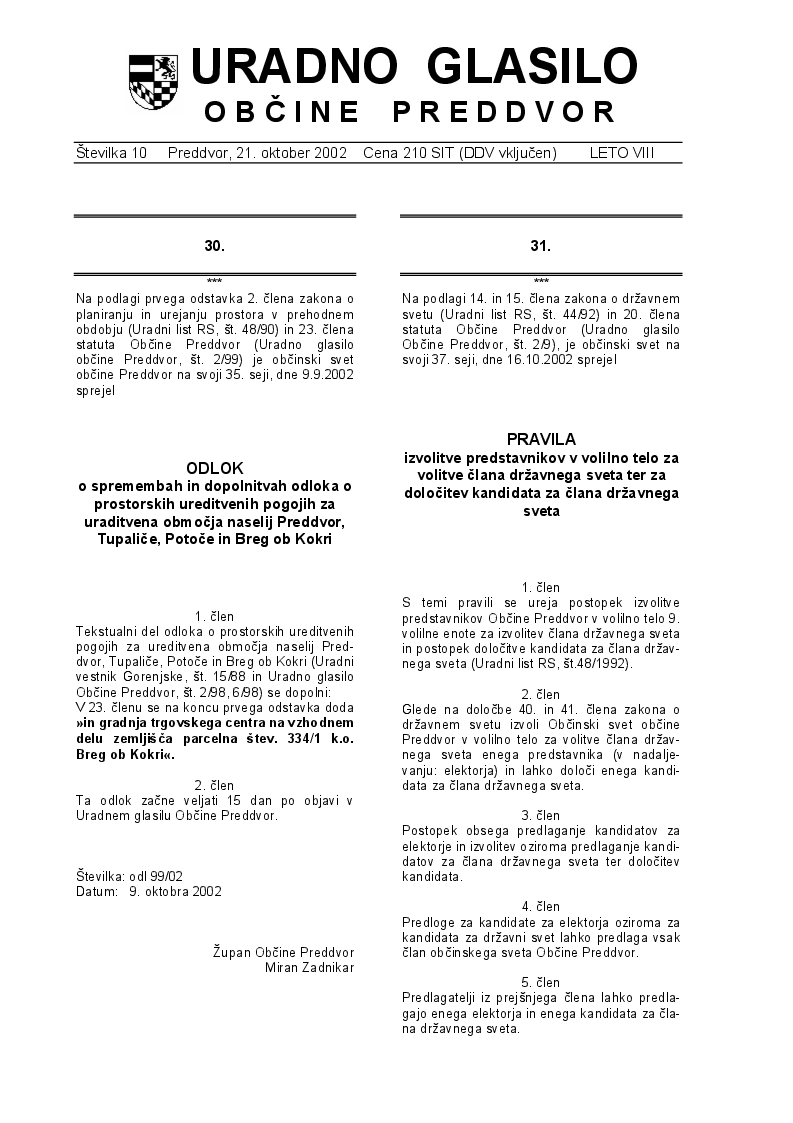 Uradno glasilo Občine Preddvor – Številka 10/2002