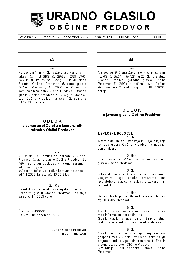 Uradno glasilo Občine Preddvor – Številka 16/2002