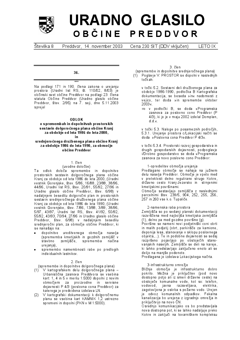 Uradno glasilo Občine Preddvor – Številka 8/2003