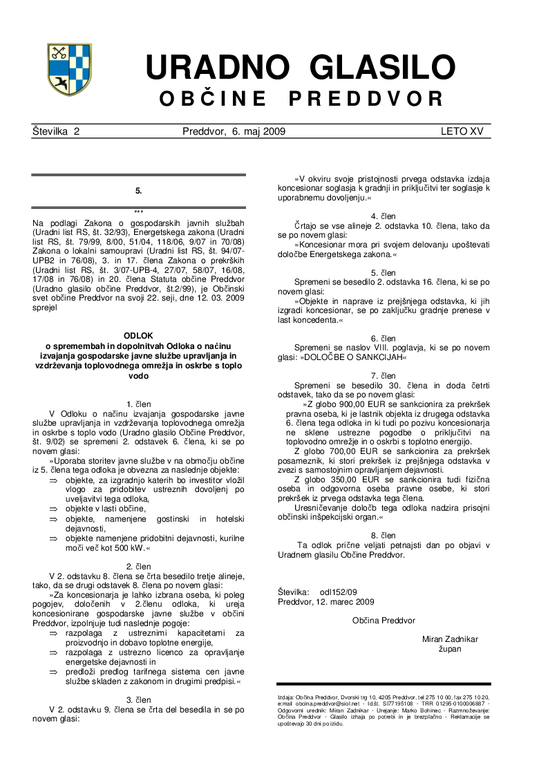 Uradno glasilo Občine Preddvor – Številka 2/2009