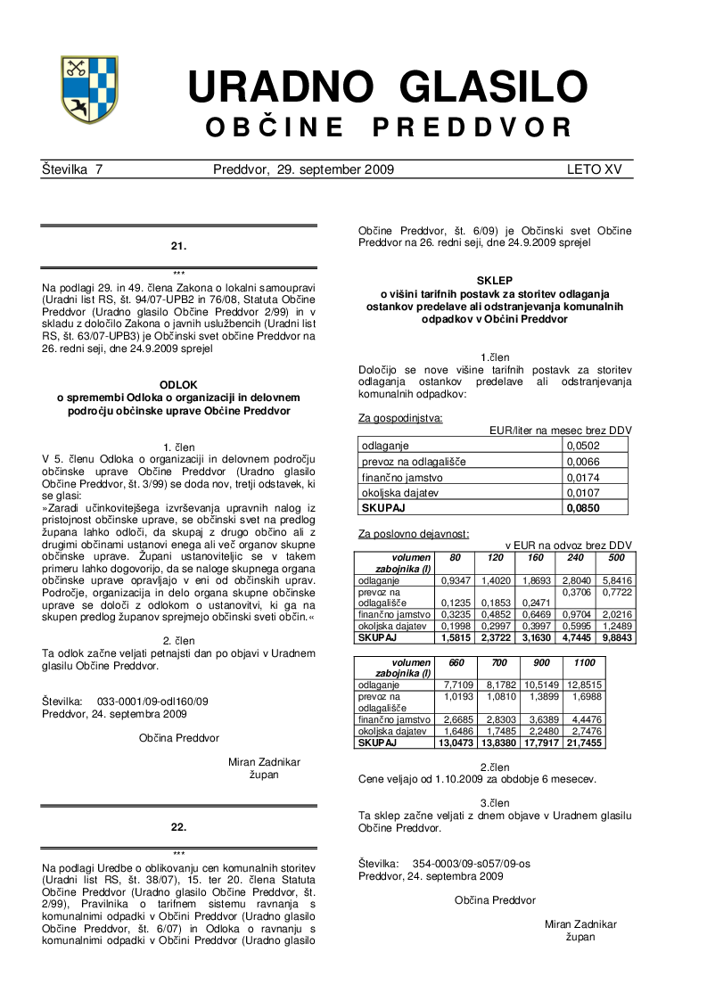 Uradno glasilo Občine Preddvor – Številka 7/2009