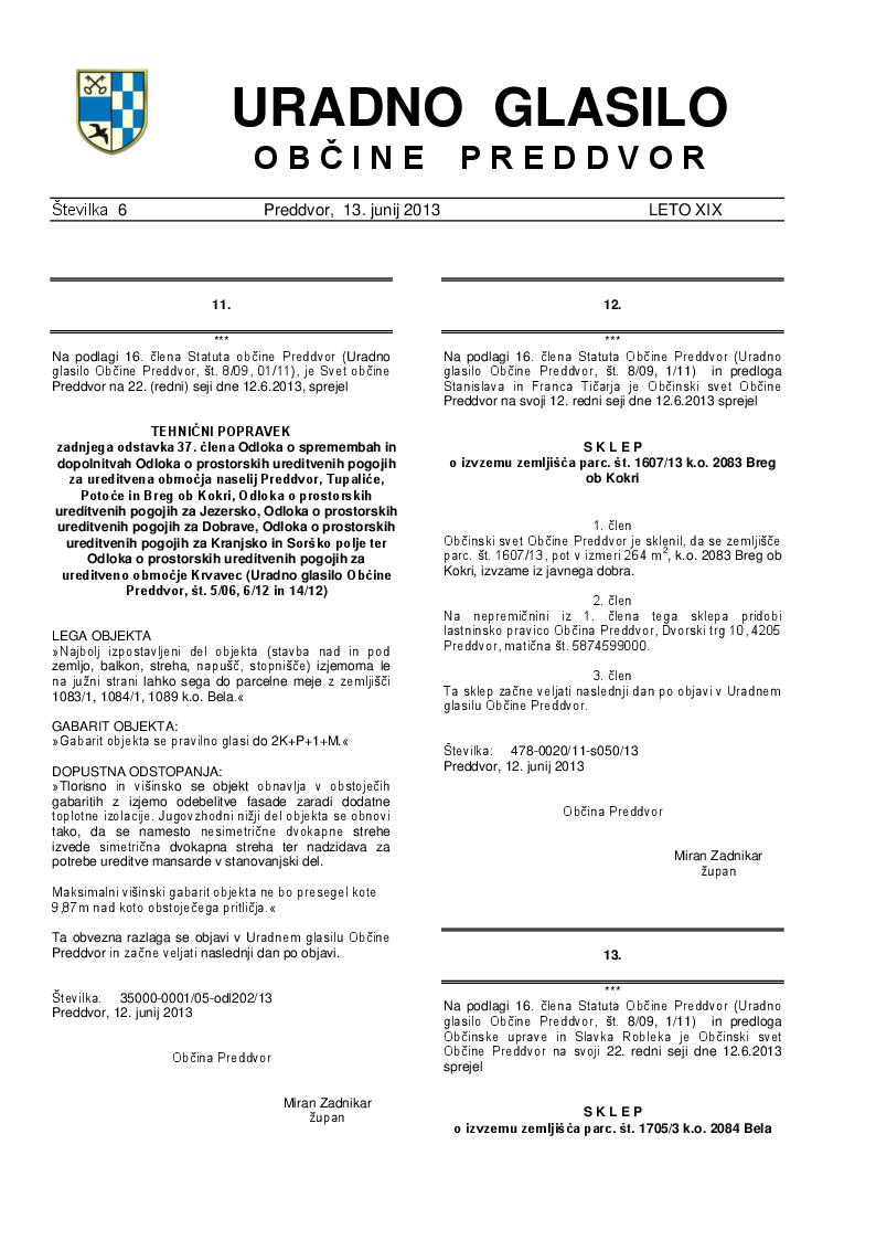 Uradno glasilo Občine Preddvor – Številka 6/2013