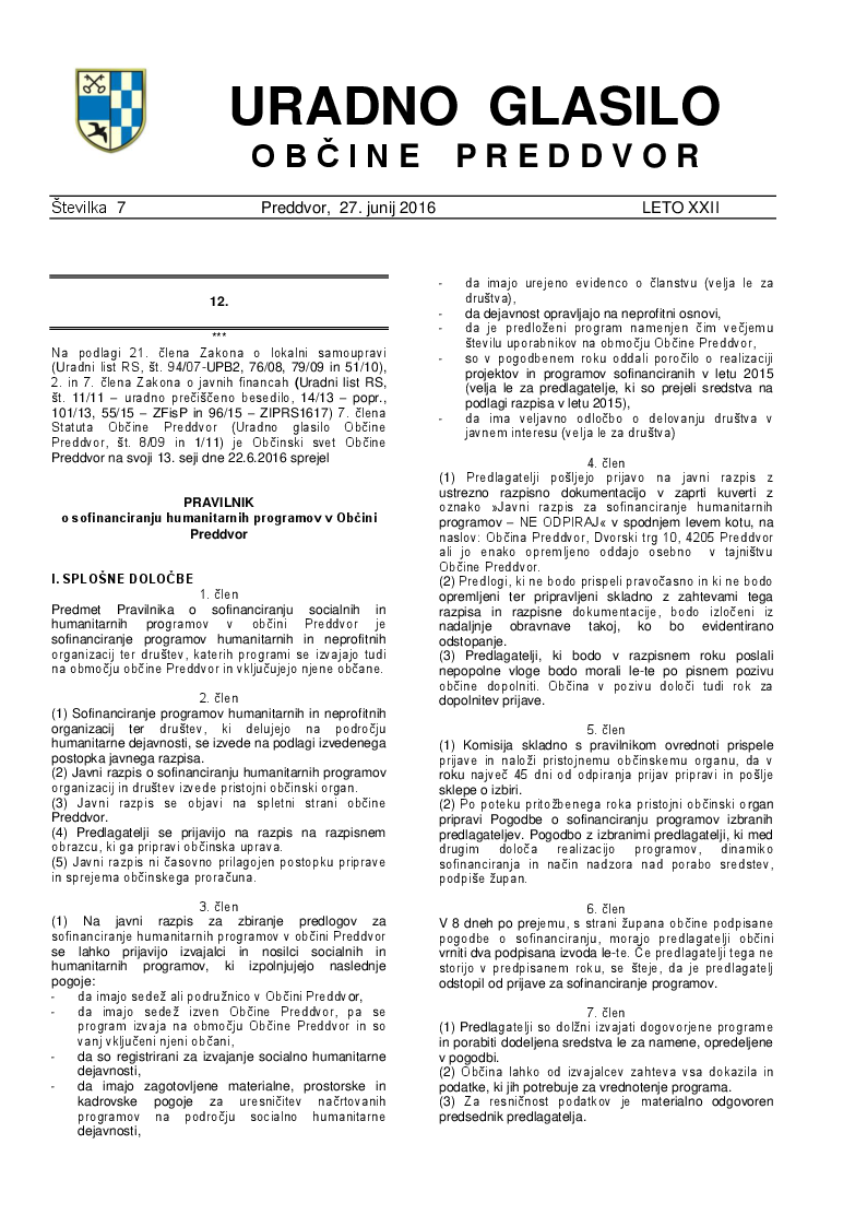 Uradno glasilo Občine Preddvor – Številka 7/2016