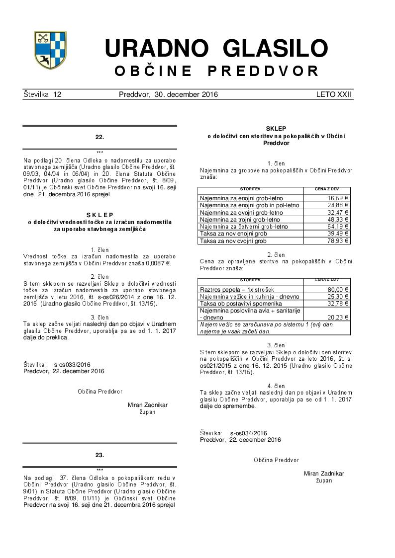 Uradno glasilo Občine Preddvor – Številka 12/2016