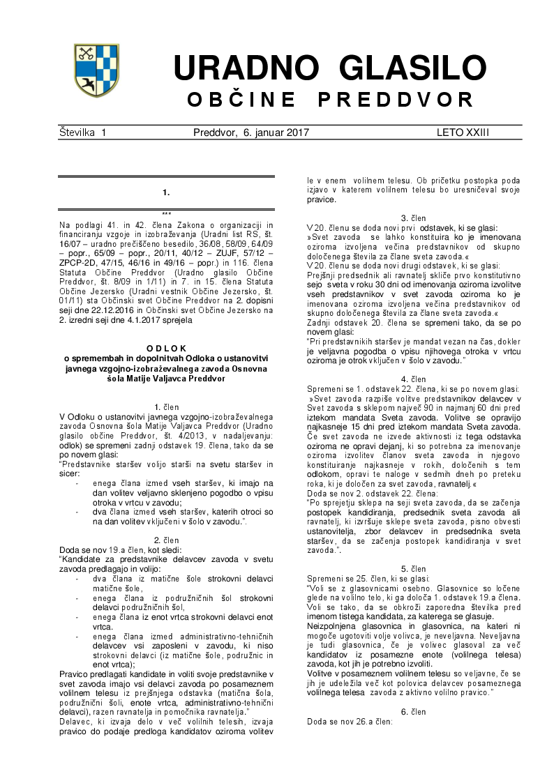 Uradno glasilo Občine Preddvor – Številka 1/2017