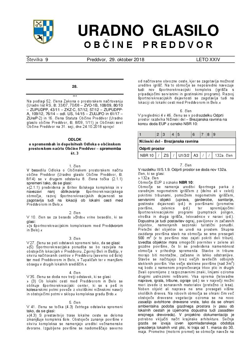 Odlok o spremembah in dopolnitvah Odloka o občinskem prostorskem načrtu Občine Preddvor – sprememba št. 3 (Uradno glasilo Občine Preddvor – Številka 9/2018)