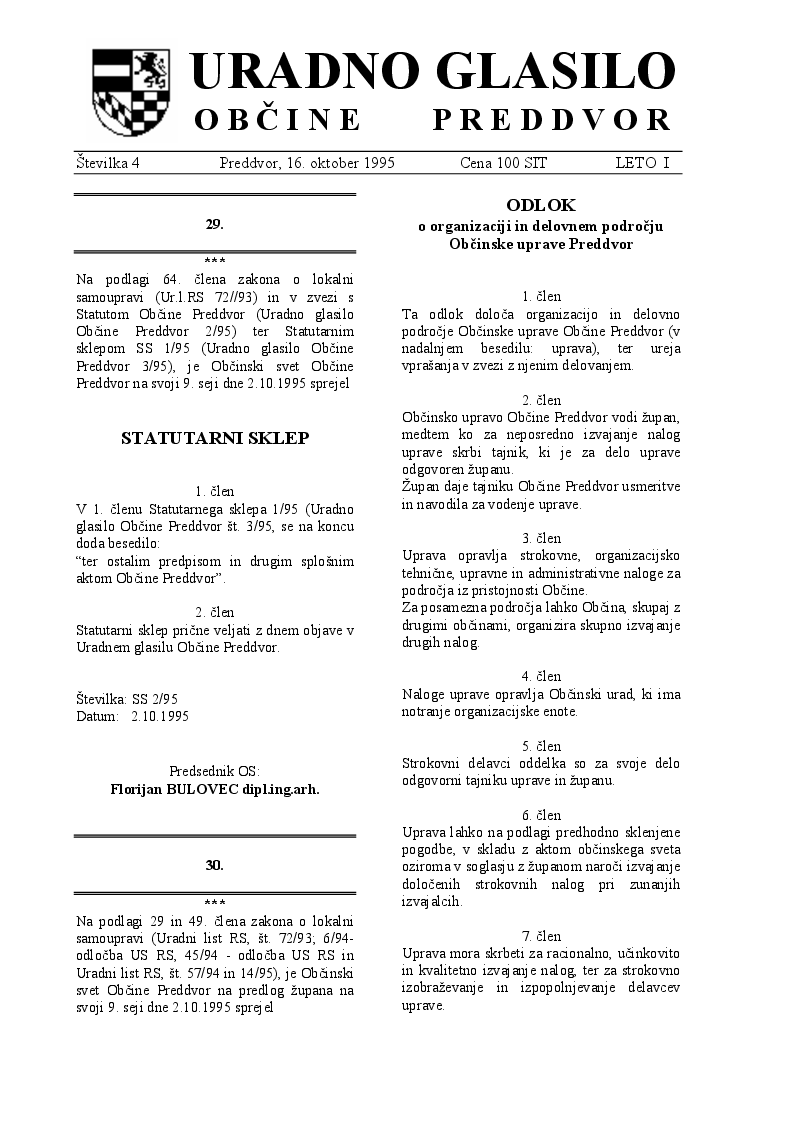 Uradno glasilo Občine Preddvor – Številka 4/1995