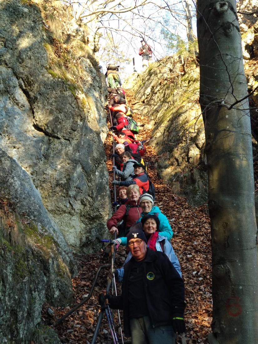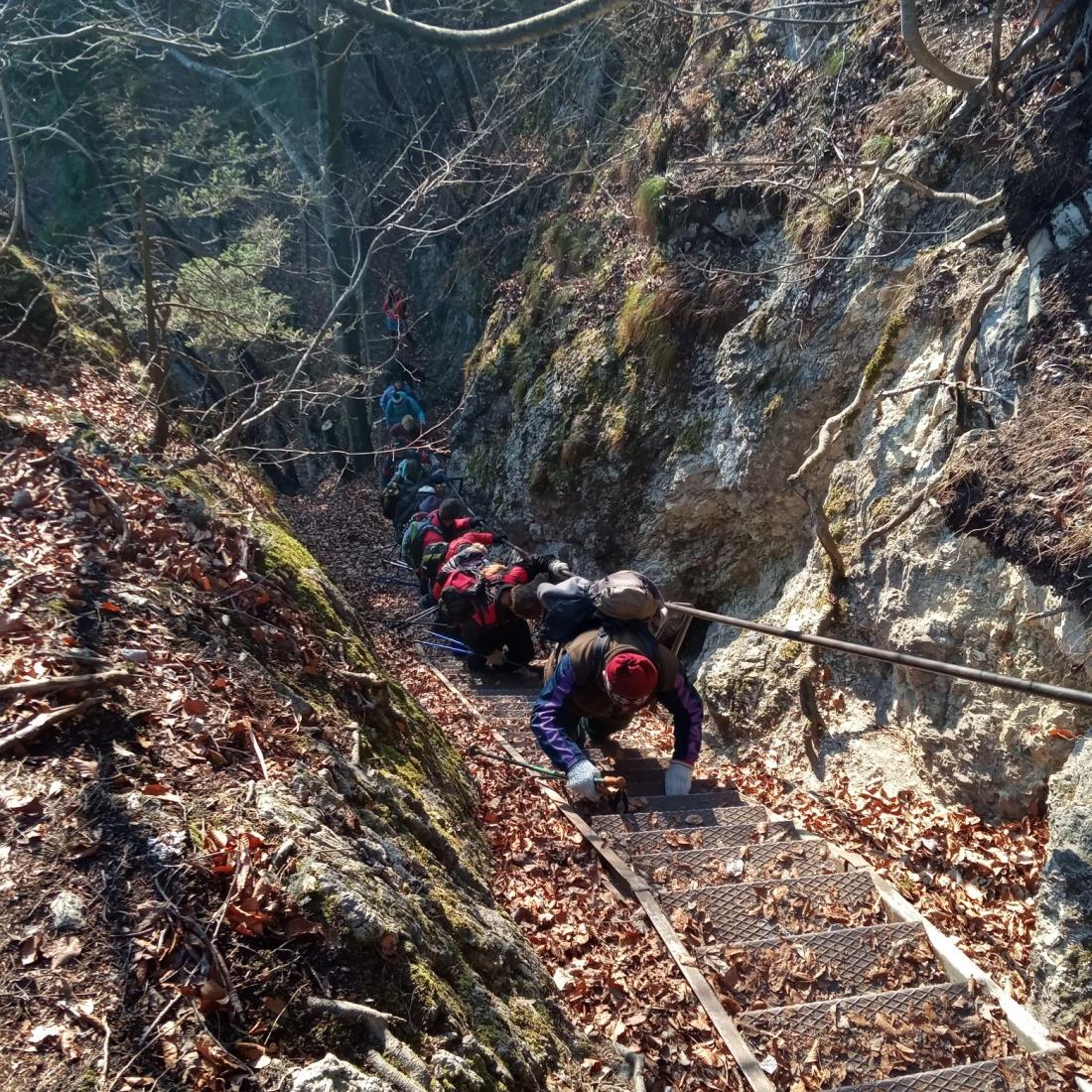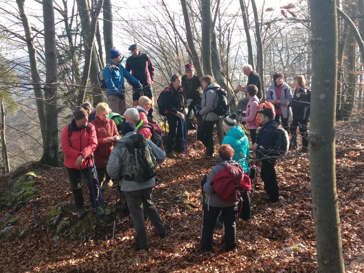 V torek, 14.1.2020, smo se v sončnem mrzlem januarskem jutru s kombijem in tremi avtomobili odpeljali proti Bledu. Dvajset pohodnikov z našim vodnikom Janezom Planincem smo se vzpeli najprej na Malo Osojnico na 691 m, nato Veliko Osojnico na 756 m in vzpone končali na Ojstrici na 610 m. Parkirali smo ob nekdanjem Domu muzealcev Slovenije in se povzpeli v strmo dvigajoči hrib. Že kmalu po startu smo prehodili prvih deset stopnic in se vedno više dvigovali, dokler nismo prispeli do 90-ih stopnic, varovanih z jeklenico. Verjetno je bil to najatraktivnejši del poti s čudovitim pogledom nazaj na Blejsko jezero in okoliške zasnežene vršace. Naš prvi postanek in uživanje ob panorami pod nami je bil na Mali Osojnici. Kmalu smo se odpravili naprej do Velike Osojnice in še pred tem imeli pred seboj pogled na drugo stran hriba na Babji zob, Galetovec in začetek bohinjske kotline. Naš zadnji, tokrat spet strm skalnat vzpon, je bil na Ojstrico, kjer smo še zadnjič opazovali pod seboj Bled in Blejsko jezero ter karavanške vrhove vse naokoli in pomalicali. Vso pot smo hodili po suhem šumečem listju, vmes je bilo nekaj skritih korenin in kamenje. Sledil je spust nazaj v dolino k našim avtomobilom. Pohod smo zaključili s pogostitvijo dveh novih članic, s kavico Metke Štempihar in sladkimi dobrotami Drage Capuder, ki bosta odslej hodili z nami. Kratek pohod s tremi strmimi vzponi na vse tri vrhove, ki jih večinoma nismo prehodili, nas je navdušil s svojo lepoto in presegel vsa pričakovanja!!! Zapisala: mag. Franceska Žumer Fotografije: Janez Planinc