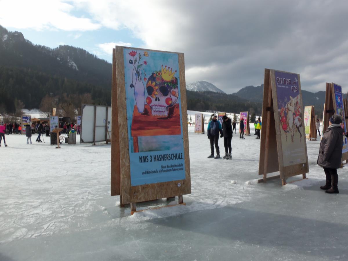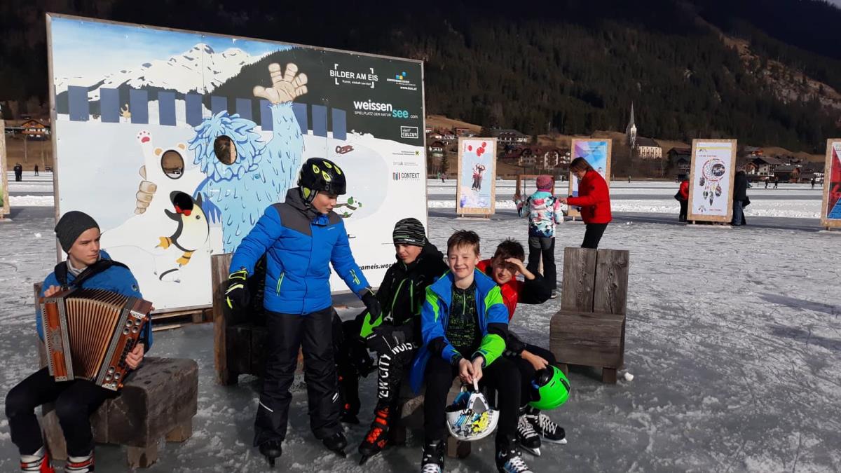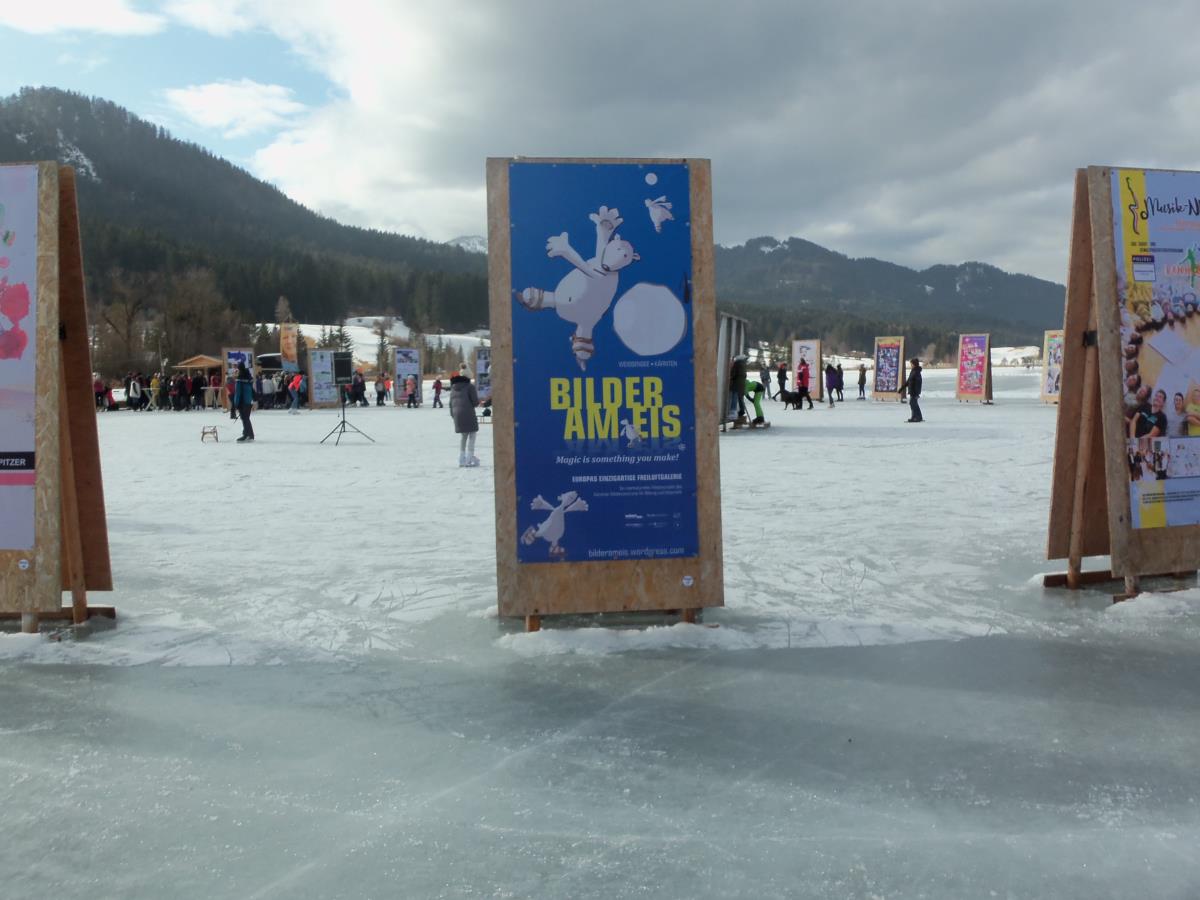 Osnovna šola Matije Valjavca Preddvor tudi letos sodeluje na mednarodni razstavi Slike na ledu - Bilder am Eis na jezeru Weissensee v Avstriji, ki jo že od leta 2003 prireja Land Kärnten Medienzentrum. Tokrat smo se odločili, da pokažemo nekaj na fotografijah ujetih trenutkov preddvorske preteklosti, ob čemer se je kar sam ponudil slogan za zastavo in razglednice »Pozdrav iz preteklosti«. Zaplata, kakršna je bila pred več kot 50 leti, paša na njej, središče vasi s potokom Suha, pa jezero, ob katerem še ni hotela, ročno sušenje sena in kozolec, v ozadju starih slik pa sedanjost. Naša zastava tako turistom prikazuje lepote našega domačega kraja, zbuja zanimanje in morda celo koga privabi na obisk v Preddvor. Krog raznolikih zastav na jezeru s slovenskim imenom Belo jezero so si na dan odprtja razstave, 26. januarja ogledali tudi udeleženci ekskurzije iz naše šole. Čeprav je bilo vreme nekoliko južno in zato led malce mehak, so preživeli lep drsalni dan. Razstavo si bo moč ogledati dokler bo jezero zamrznjeno, nato pa bo naša najnovejša zastava – tako kot že vse njene predhodnice – krasila prostore šole, razglednico z enakim motivom pa boste kmalu lahko dobili v TICu Preddvor. Koordinatorici projekta Petra Lombar Premru in Katarina Klakočar Teršek Idejna zasnova letošnje preddvorske slike na ledu: Milena Tavželj Fotografije: Katarina Klakočar Teršek, Mira Vizjak, Martin Premru