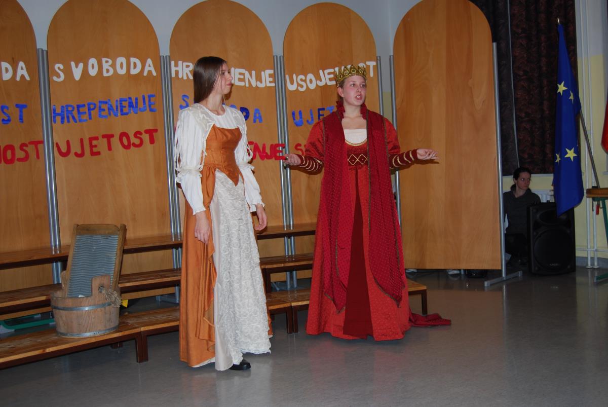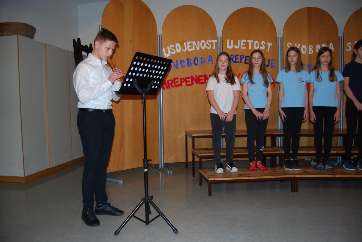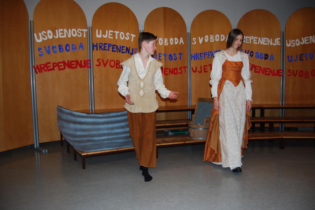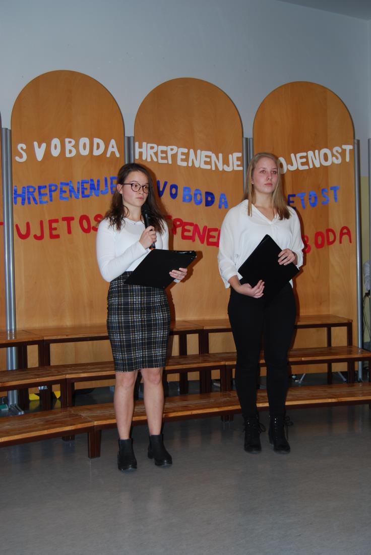 Bogat in raznovrsten kulturni program so izvedli učenke in učenci višjih razredov. Uprizorili so Prešernovo Lepo Vido in recital ljubezenskih ljudskih pesmi Ljubezen in usoda, z Zdravljico ter ljudskima pesmima Pastirče mlado in Teče mi vodica je nastopila pevska skupina, nadarjeni glasbeniki so navdušili z igranjem na evfonij, prečno flavto in klavir, dekleti sta zapeli ob kitarah, za domače vzdušje pa je s spletom ljudskih plesov poskrbela otroška skupina preddvorskega folklornega društva. Povsem drugačen in presenetljiv pa je bil zaključek prireditve: sodobna instalacija z igro in plesom Ujetost. »Morali bomo utišati zvočnike po cestah in domovih, utrniti mnogo sveč po oltarjih in prižigati novih luči, da osvetlijo človeka, njegovih poti. Morali bomo! Zakopati mnogo preglasnih besed in spregovoriti novih, dobrih, tišjih, resničnih,« so vzklikali dekle, fant in črne sence ter marsikateremu obiskovalcu ponudil misel za popotnico in razglabljanje o kulturi.