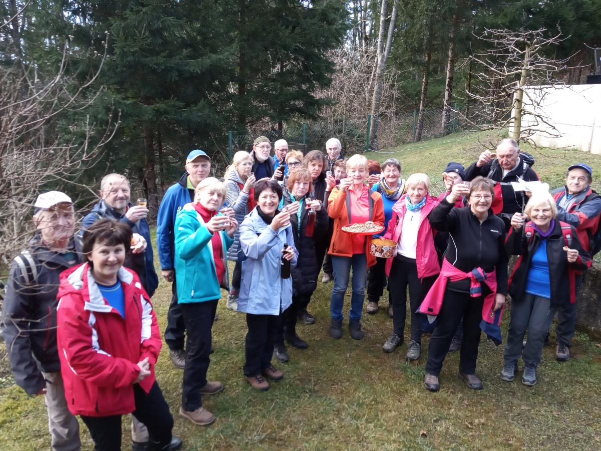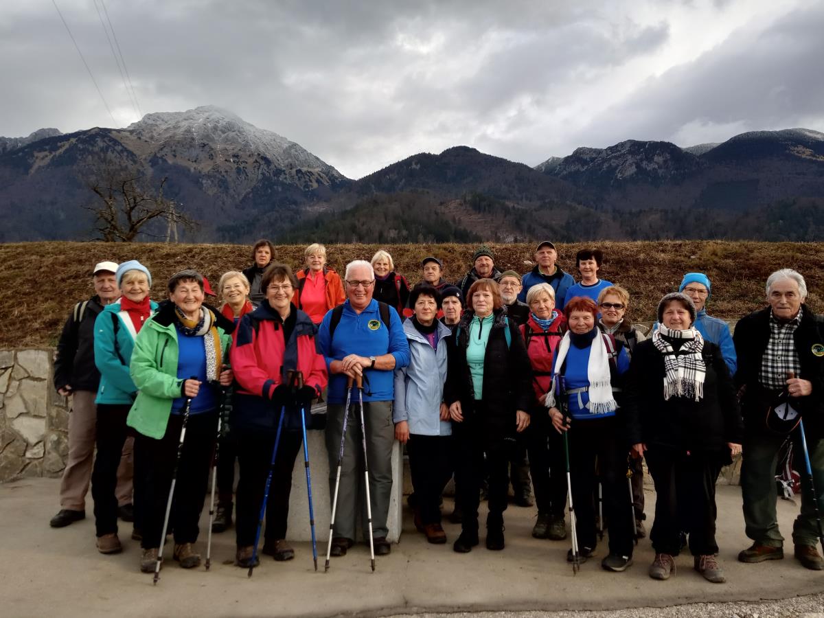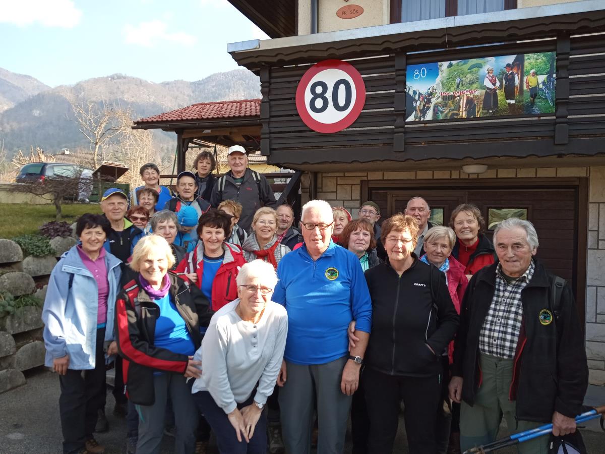 V torek, 11. 2. 2020, smo se kot običajno zbrali ob osmi uri na dvorišču gradu v Preddvoru in jo, tokrat že drugič zaporedoma, peš mahnili na pot. Tokrat je bila naša skupina izjemno številčna, 29 nas je hodilo, manjkali so le nujno zadržani. Naš zvesti pohodnik Franci Cvek je praznoval 80-letnico in sta nas z ženo Slavko povabila k sebi domov!!!