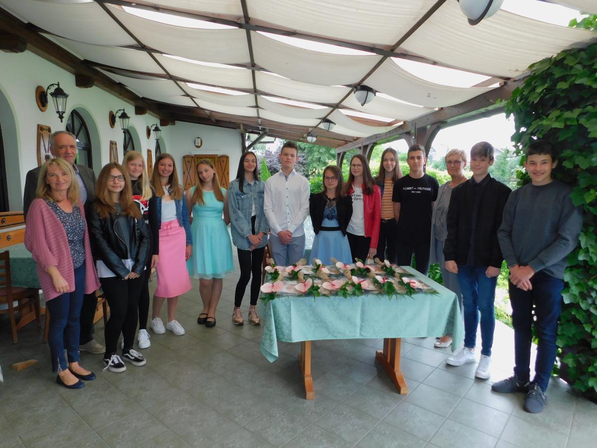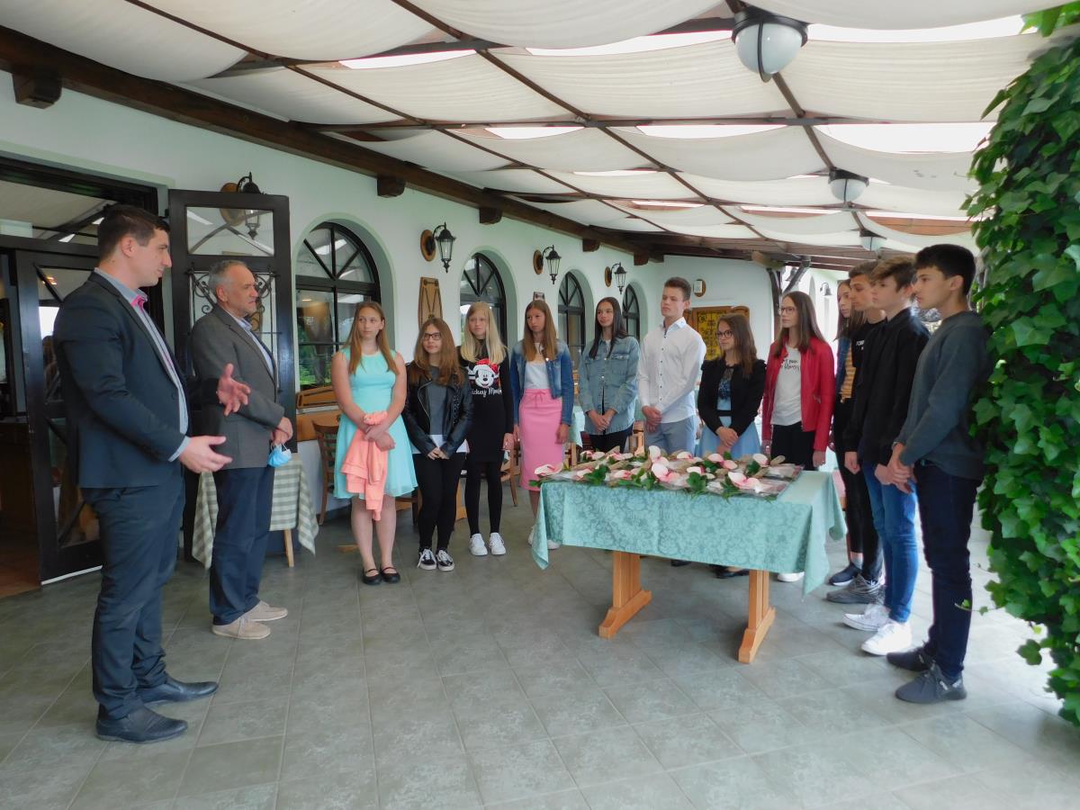 Župan občine Preddvor Rok Roblek je v sredo, 10. junija 2020 na terasi Gostilne Bizjak na Zgornji Beli sprejel najuspešnejše letošnje devetošolce Osnovne šole Matije Valjavca. Kar dvanajst iz odhajajoče generacije jih je doseglo odličen uspeh v vseh razredih osnovne šole: Zala Meglič, Urša Merljak, Jakob Sitar in Neža Uršič iz 9. a ter Ana Avsec, Neja Bobnar, Zoja Bobnar, Bine Grilc, Tereza Lombar, Jošt Prestor, Gregor Rogelj in Eva Tofant iz 9.b. Na srečanju so se jim pridružili še razredničarki Mojca Žepič in Jeli Cuderman ter ravnatelj Bogdan Sušnik.