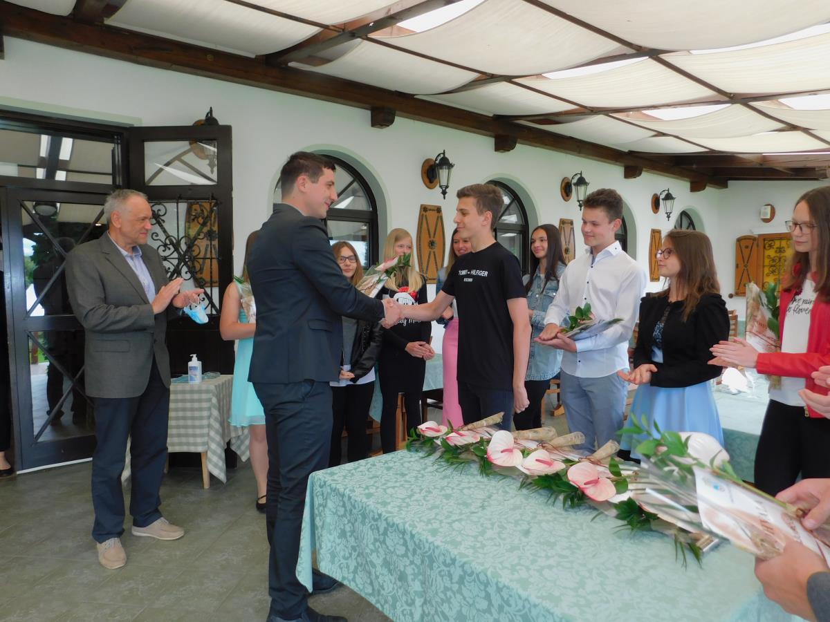 Župan je odličnjake nagradil s priznanji in darili. Poudaril je, da so jim uspeh prinesli trud, učenje in čas, ki so ga - več kot večina drugih - preživeli za knjigami, priznanje za odličnost pa je tisto, ki jih dviga nad povprečje. Posebne izkušnje, ki so se jim vtisnile v spomin je primerjal s stopinjami v snegu, na katere se lahko ozremo. Četudi se letošnje šolsko leto zaključuje drugače kot prejšnja in učenci niso mogli prisostvovati običajnemu pouku in nekaterim načrtovanim dejavnostim, bo generacija, ki v času koronavirusa končuje osnovno šolo, prav zavoljo teh izkušenj v svet poslana celo z boljšo popotnico, kot druge, pa je menil ravnatelj.