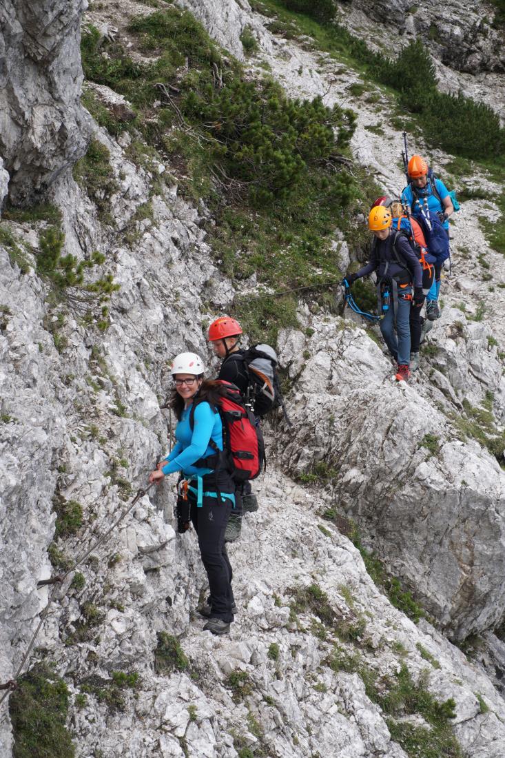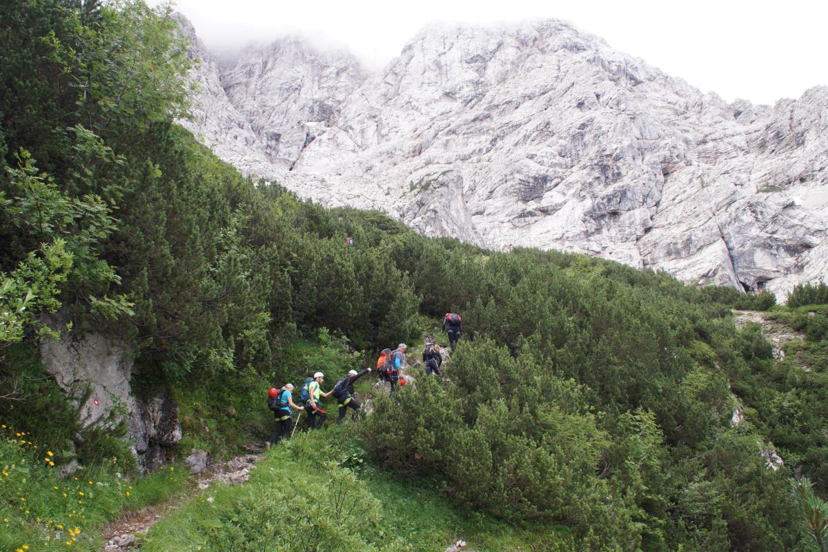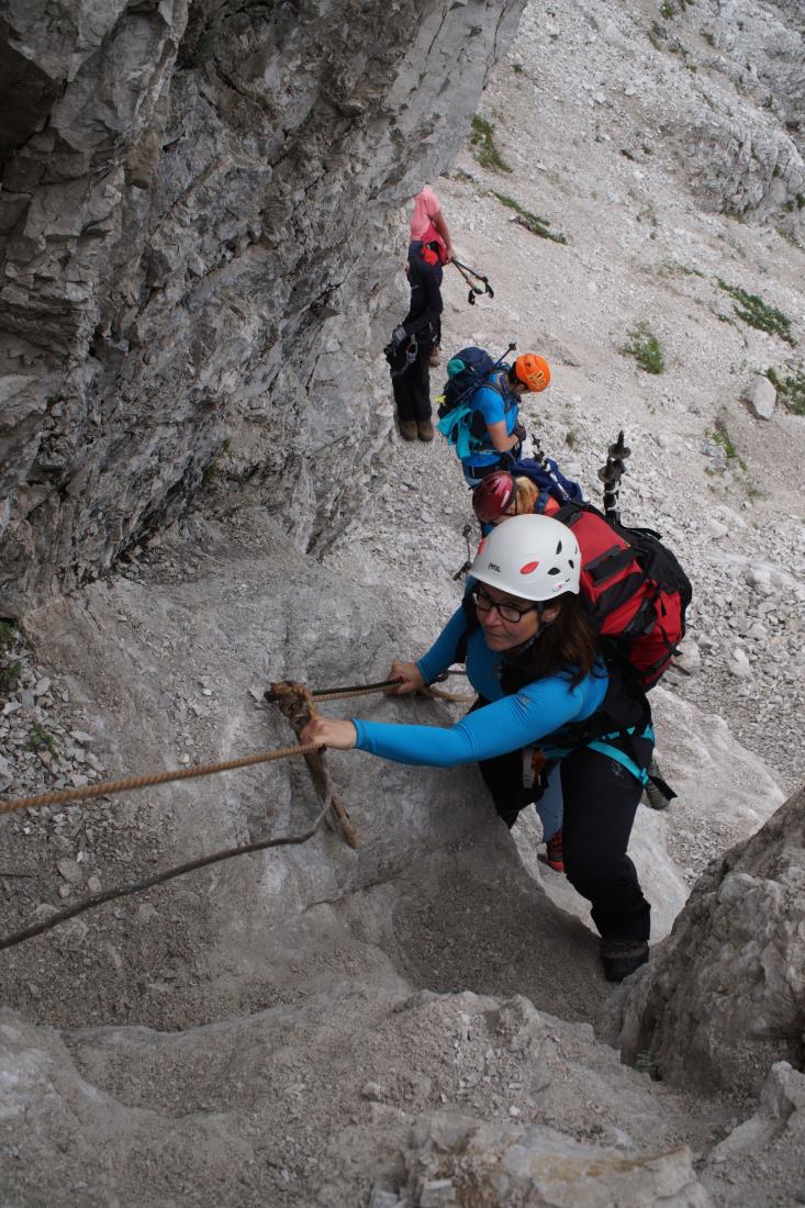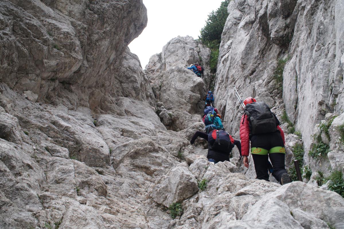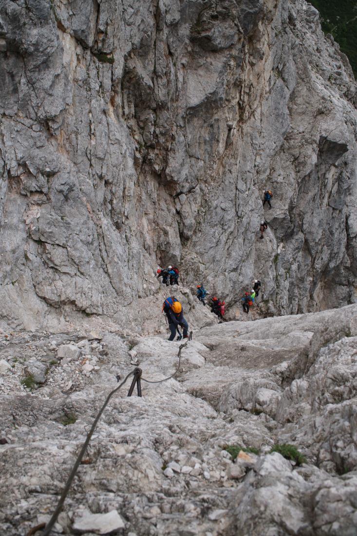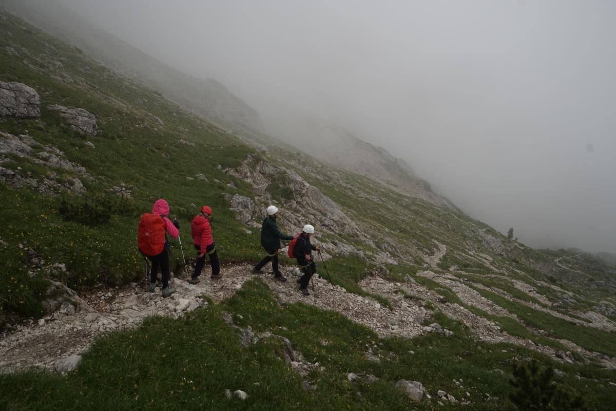 Iz Preddvora smo se odpeljali proti Jezerskemu pred šesto uro in 11 planincev nas je zakorakalo v hrib, dva sta nas že čakala na Ledinah. Prvi plezalni vzpon je bil po Slovenski poti na Ledine. Po malici pri Kranjski koči na Ledinah smo pot takoj nadaljevali proti Veliki Babi. Število planincev se je povzpelo na 12, med nami je bil tudi Rudi Lanz, »najboljši vrtalec severno od rakovega povratnika«, ki je dan preje, v soboto, skupaj z gospodarjem Kranjske koče na Ledinah, Damjanom Nagličem, rojenim na Zg. Beli, popravil zrahljano jeklenico, da smo se sploh lahko povzpeli na vrh. Kmalu za kočo se je pot odcepila levo. Sledili smo markacijam Velika Baba in Rudijeva vertikala, imenovana po že preje omenjenem markacistu in vrtalcu v stene, Rudiju Lanzu. Previdno smo se vzpenjali, vpenjali na jeklenice, prestavljali sponke in se bližali koncu plezalnega dela poti. Sledila je samo še običajna planinska hoja do vrha. Največ čestitk je bil deležen slepi Jožko, ki je vrh osvojil ob navezi Anton Vozelj – Marjan Bogataj. Po počitku in malici smo se spustili nazaj čez Jezersko in Savinsko sedlo do koče. Vmes nas je med spustom še malo namočil dež, hitra Andrej in Marjan sta si zaželela še malo vzpona, zato sta »skočila« še na Ledinski vrh. Sledil je le še spust v dolino po stari Nemški poti, po kateri nas je vodil Rudi Lanz.