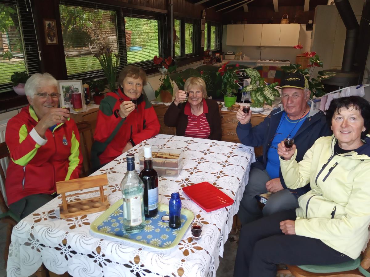 Vrnitev po isti poti, se je ob rosenju, pogovoru o delu na vrtu in klepetu na Bregu pri naši prijateljici Anici, končala v Preddvoru nekaj po 12. uri.