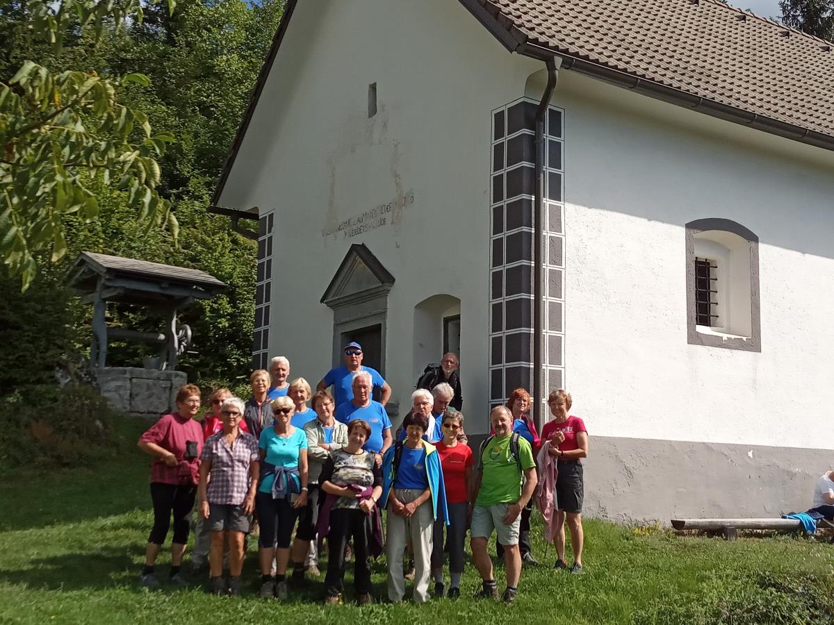 V torek, 25. 8. 2020, se nas je 22 pohodnikov pod vodstvom Janeza Planinca ob osmih zjutraj z dvema kombijema in enim osebnim avtom odpeljalo iz Preddvora proti Tuhinjski dolini. Zavili smo v vas Kostanj, od koder smo nadaljevali peš proti podružnični cerkvi sv. Miklavža na Gori na nadmorski višini 750m.