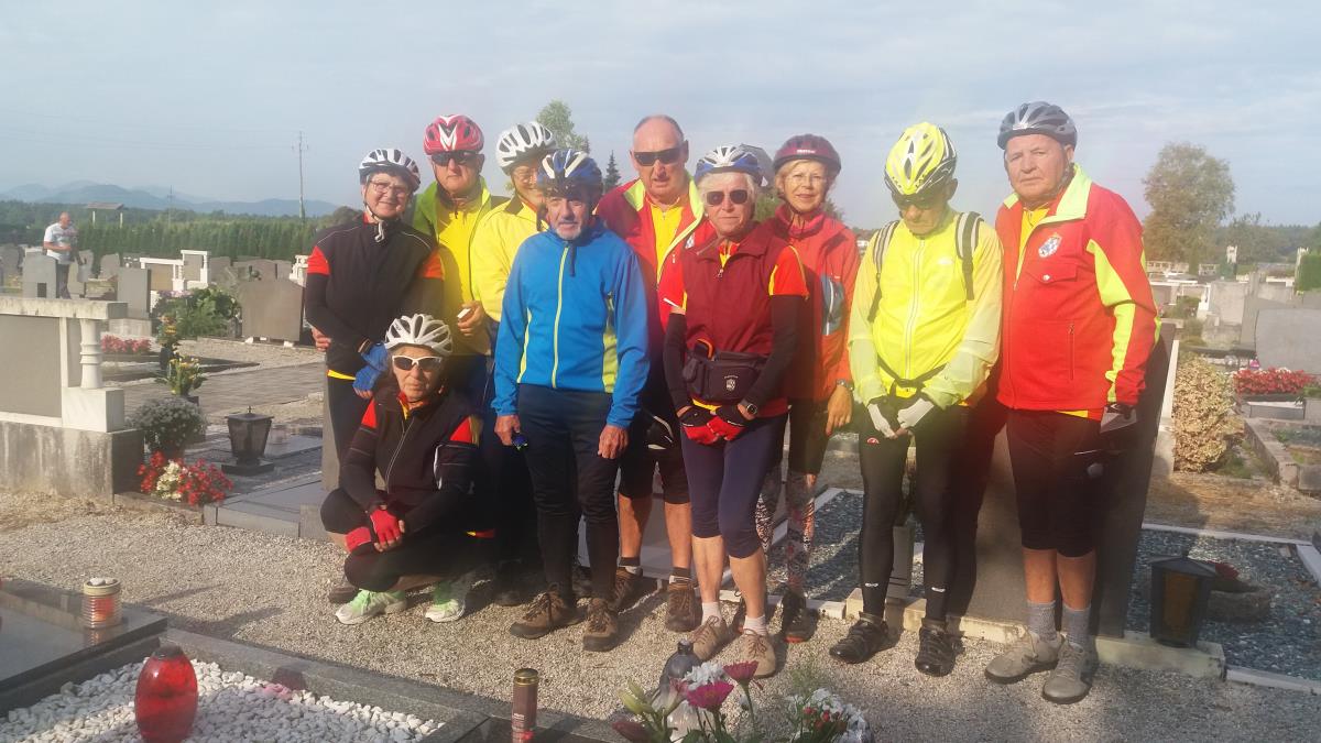 Najprej smo se zapeljali do pokopališča in obiskali njihove grobove. Milan Tičar je prižgal svečke in s tišini smo se spomnili tudi lastne minljivosti. Najprej smo se ustavili pri grobu Marjana Gorze, ustanovitelja in vodja kolesarske sekcije, ki je tri leta nazaj na ta dan nepričakovano odšel od nas. Prav zato je 21. september tudi dan vsakoletnega spominskega kolesarjenja. Nato smo šli do groba Matije Sladiča z Zg. Bele in nazadnje do groba Francke Šavs iz Preddvora. Vožnjo smo nadaljevali z vožnjo skozi Breg, Tupaliče, Hotemaže do Olševka in naprej do Velesovega, kjer smo v baru popili kavico in pojedli sladke dobrote, ki jih je spekla Anica Gorza. Kolesarjenje smo nadaljevali do Šenčurja, kjer smo se obrnili nazaj do Preddvora.
