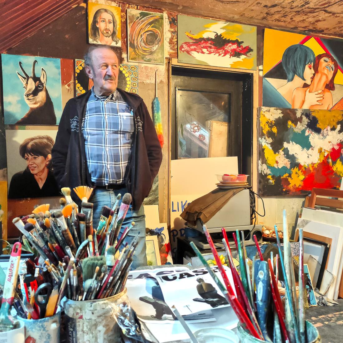 Slike preddvorskega slikarja samorastnika izražajo njegovo iskrivo, dobrovoljno, nasmejano in kritično naravo, predvsem pa pozitivno naravnanost. Z njegovo sliko boste v svoj dom vnesli kanček pozitivne energije.