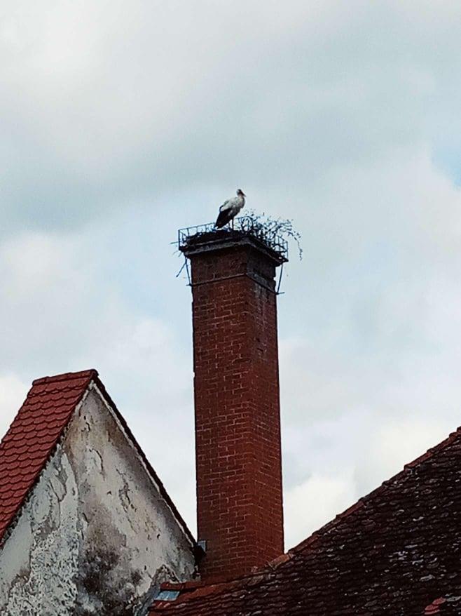 Preddvor, 7. aprila 2021 - Danes popoldne se je v domače gnezdo na grajskem dimniku vrnil štrk! Na isti dan kot lani, sporoča