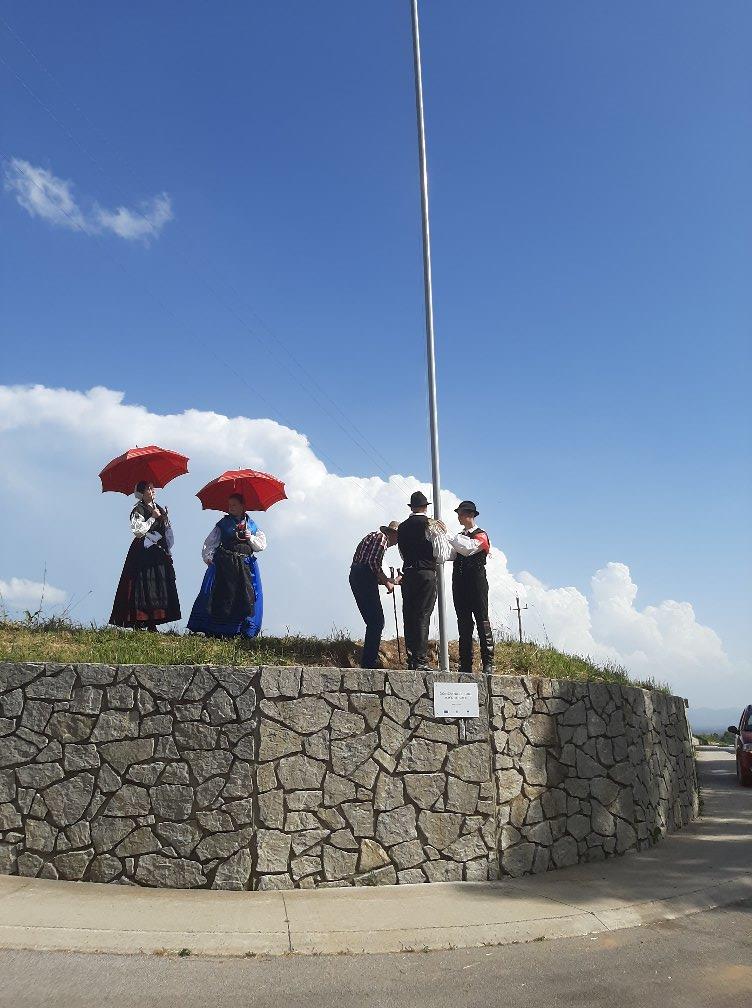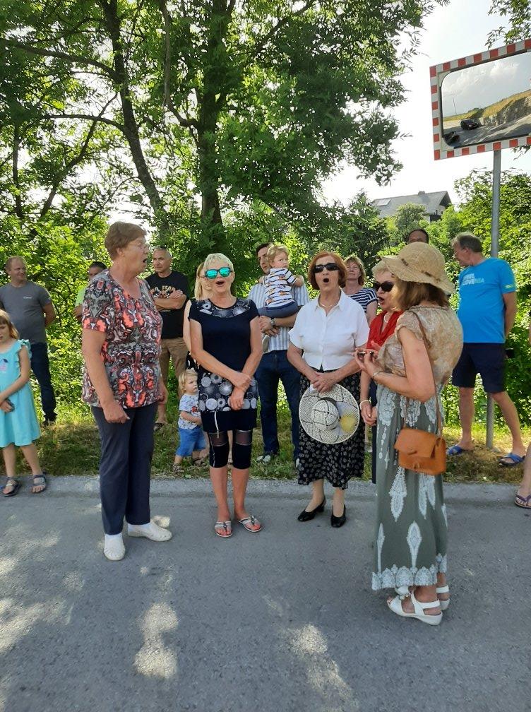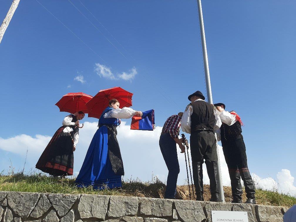 Ob dvigu zastave so bašljanski pevci zapeli slovensko himno in Storžič je naše kraljestvo, otroški pevski zborček pa je zapel malo lažje pesmice.