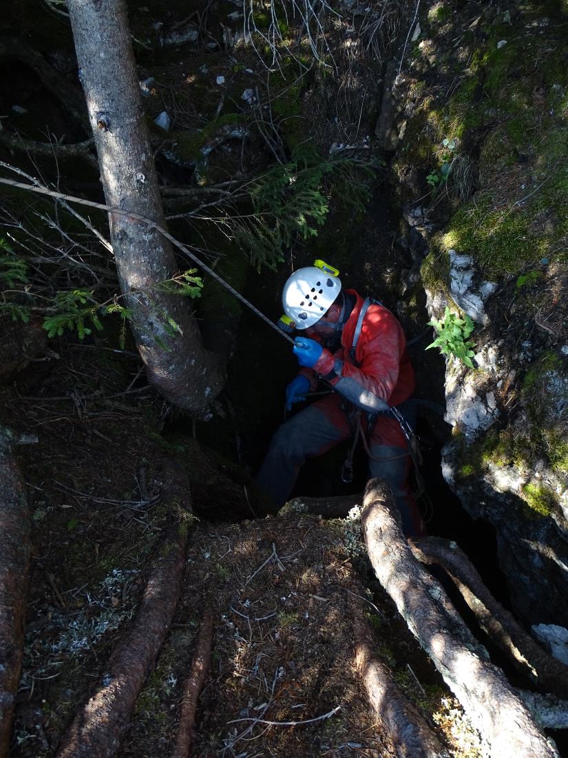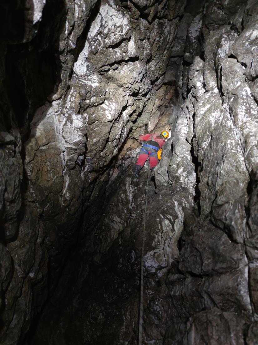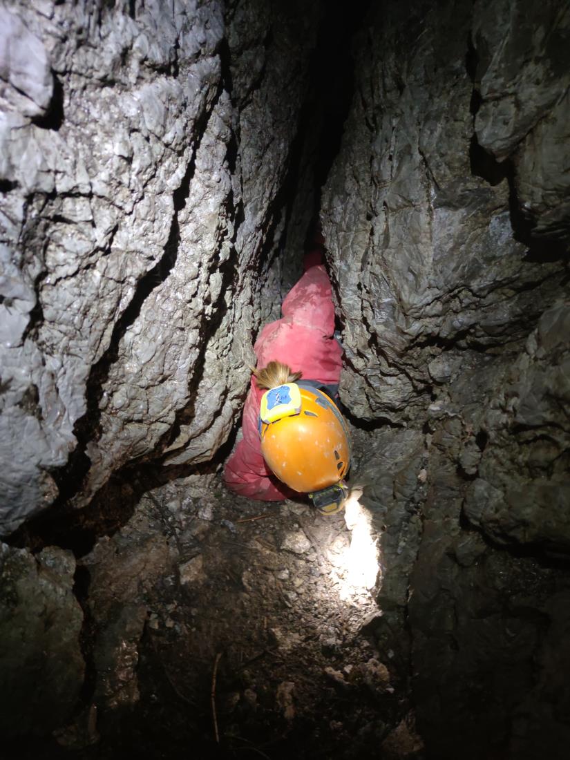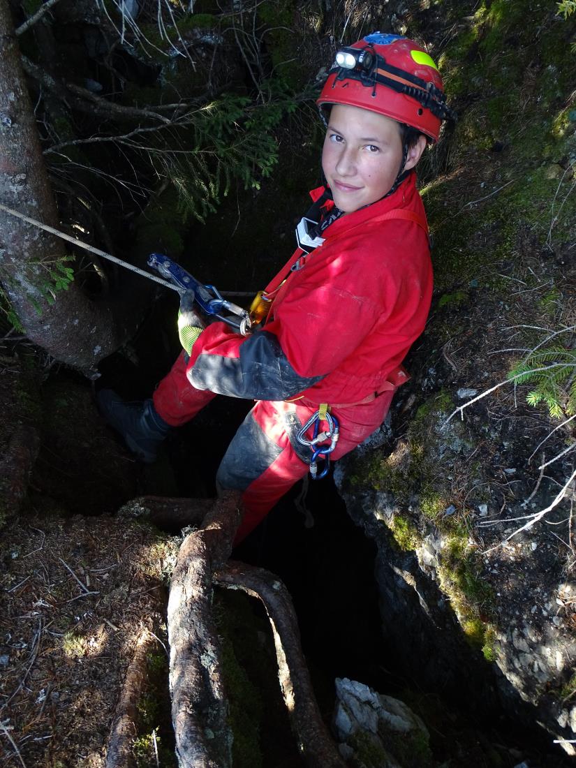 Simpatična jamarka Lena in štirje vrli prešerni fantje Matej, Vasja, Žiga in 13-letni Urh so si že nadeli jamarsko opremo in stopili k odprtini v brezno. Tako povsem mirnih ljudi že dolgo nisem videl. Lena je prižgala lučko na čeladi, se oprijela vrvi in se začela spuščati tako elegantno, kot da gre v spodnje nadstropje k sosedi na kavo in klepet. In že je ni bilo več. Spodaj nekje se je vpela na sidrišče in poklicala, da se ji lahko pridruži naslednji. Tako sem v nekaj minutah na vrhu brezna ostal sam. Laično sem zadnjega, ki se je začel spuščati v brezno, vprašal, če je notri pod zemljo signal, da v primeru nepričakovanega dogodka lahko nekoga pokličejo. Vasja se je zasmejal in mi odgovoril, da signala notri ni. Če se zgodi, da jih v dveh urah ni iz jame, potem jih jamarski kolegi lepo poiščejo.