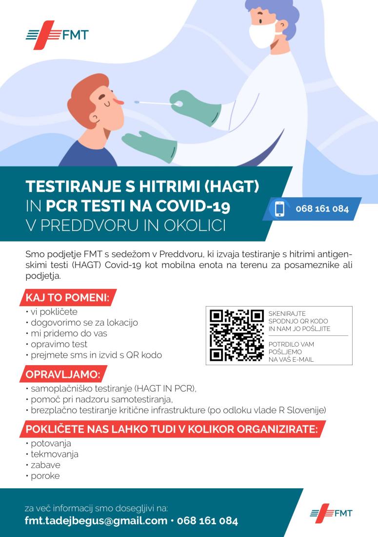 Cena testa na lokaciji je 9,5 evra. V kolikor spadate v kritično infrastrukturo, lahko test opravite brezplačno.