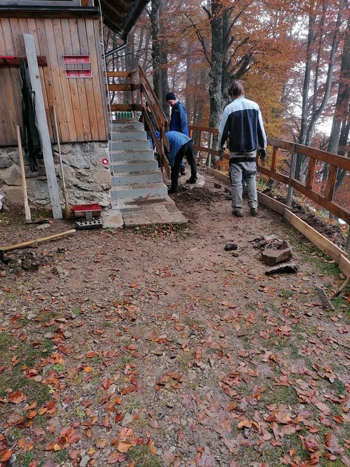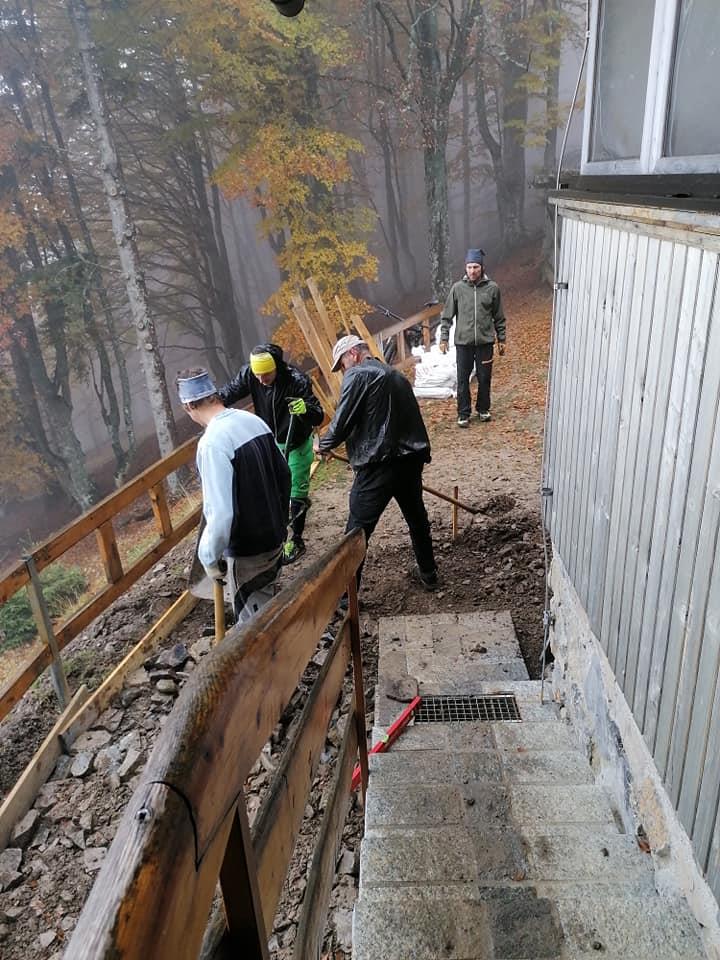 Prav zato so se predsednik društva Aleš Drekonja in člani upravnega odbora odločili, da se okoli koče naredi pohodna pot, ki bo v prvi vrsti zaščitila kočo in tudi za to, da bo za obiskovalce hoja okoli koče prijaznejša.