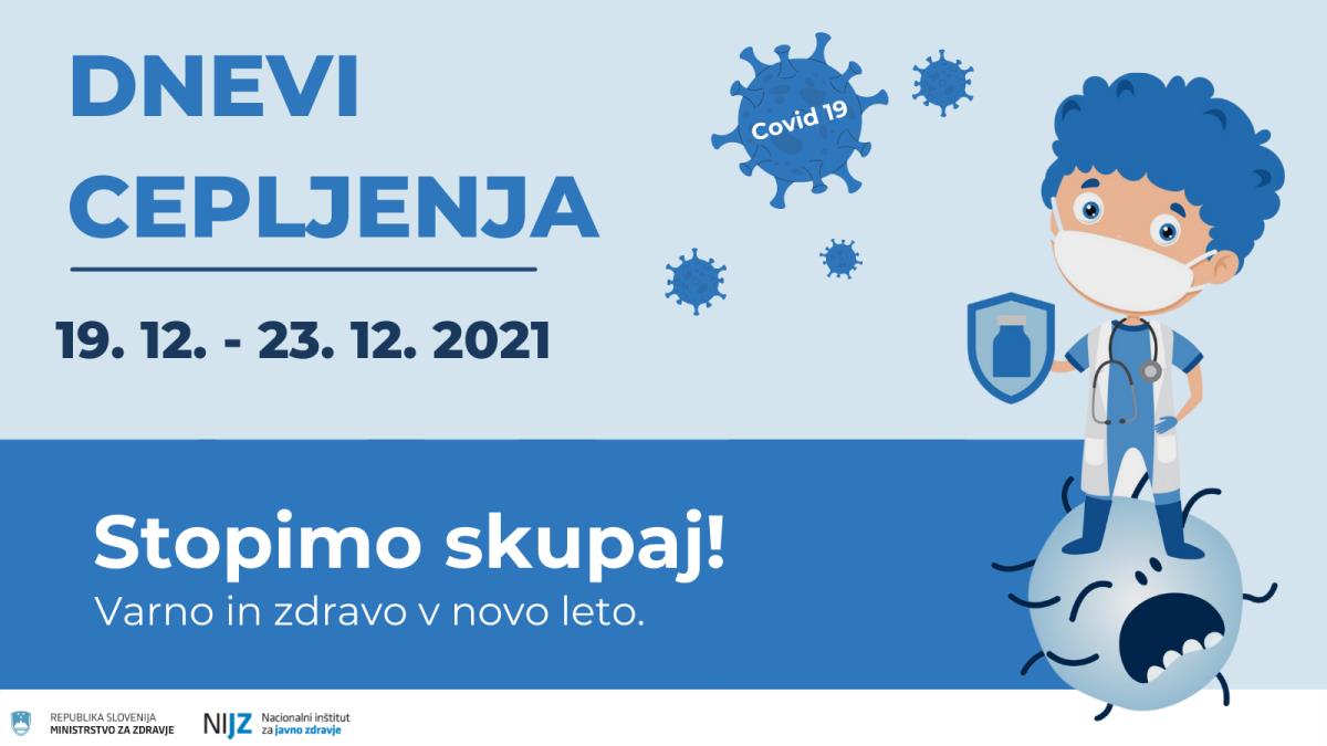 V Sloveniji bo od nedelje, 19. do četrtka, 23. decembra 2021 potekala cepilna akcija Dnevi cepljenja, s katero želijo k cepljenju proti covidu-19 nagovoriti tiste, ki se za to še niso odločili. V tem času bodo cepilni centri imeli podaljšan delovni časi, ponekod bodo cepili tudi ponoči. V večjem številu bodo vzpostavljene tudi mobilne enote.