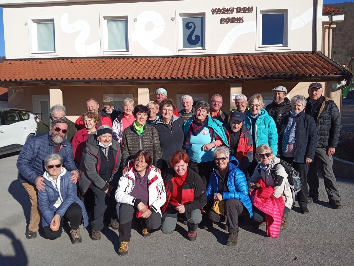 Na kulturni dan, 8. 2.2022, smo se v svežem jutru pohodniki DU Preddvor zbrali v Preddvoru in se s tremi kombiji odpeljali v Rodik, ki leži ob vznožju Brkinov v občini Hrpelje – Kozina, ki leži na nadmorski višini cca 600 m.