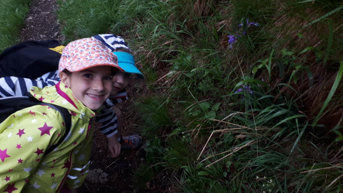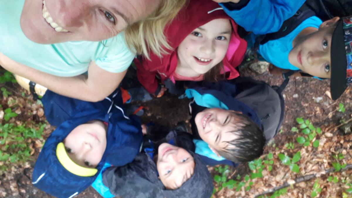Med vzponom nas je ujela ploha, a otrok to ni motilo - ko smo vedrili pod smrekovimi krošnjami, so bili celo navdušeni.