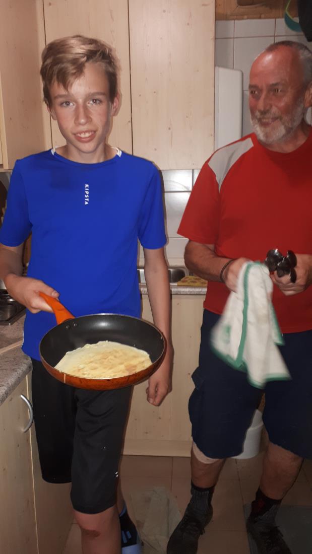 V zavetišču Planinskega društva Preddvor nas je kot vedno s toplim čajem pričakal oskrbnik Rajko, ki je nato nadobudneže poučil o pripravi na turo, o varni hoji v gorah in o planinskem bontonu. Brez palačink seveda tudi tokrat ni šlo, potem ko so dekleta sodelovala pri pripravi mase, jih je spekel že izkušeni planinski palačinkar Martin. Potem pa ogled lučk v dolini in veselje ob namestitvi v sobah. Otroški živ žav je neverjetno hitro utihnil.