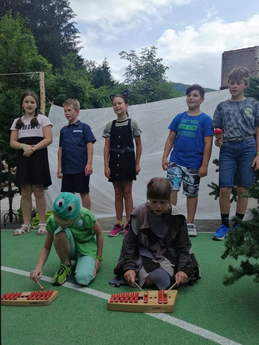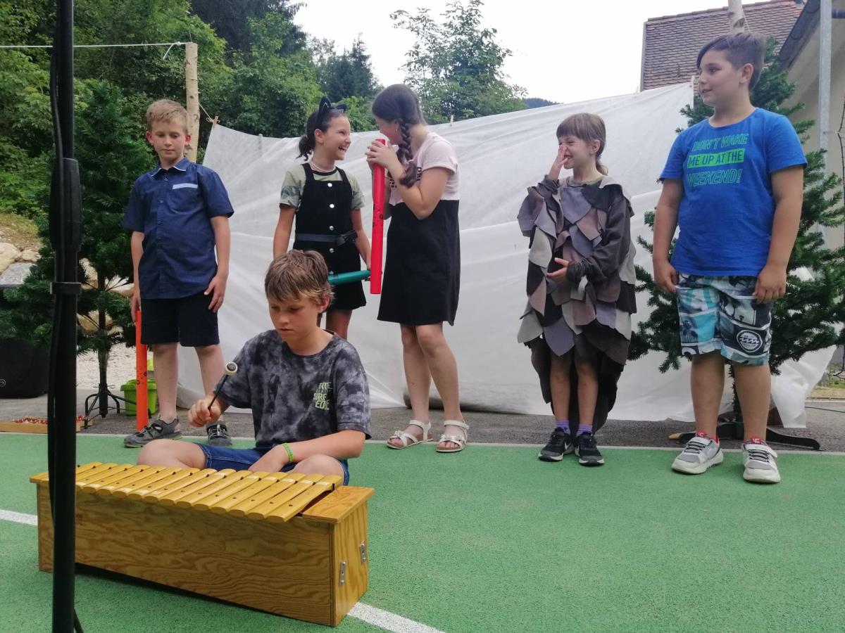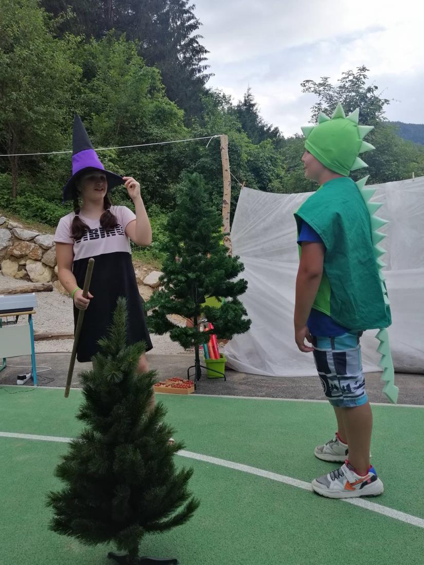 Na oder je potem prišla čarovnica, ki je skupaj z mačkom letela proti novemu igrišču, vmes pobirala različne živali in se z njihovo pomočjo izognila ostrim zobem zlobnega zmaja. Da pa igre ne bi bilo prehitro konec, so učenci vmes popestrili program z različnimi glasbenimi in plesnimi nastopi. Tako so nas popeljali v vesolje s pesmijo Zemlja pleše, si med plesom nadeli Ruzak, nas zazibali v Dan ljubezni in še marsikaj. Program pa so zaokrožile še pevke iz Kokre, ki so s svojimi ubranimi glasovi zapele same dve pesmi in skupaj z učenci še zadnjo o Kokri.